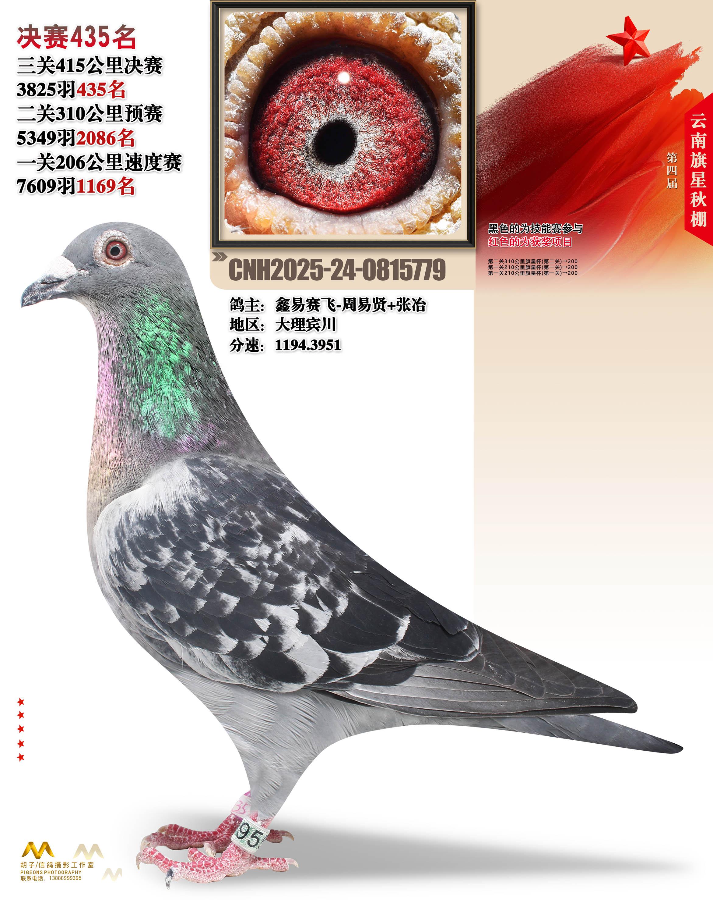 云南大理旗星赛鸽中心2025决赛435名鑫易赛飞-周易贤+张冶24-0815779大理宾川获奖鸽展示!