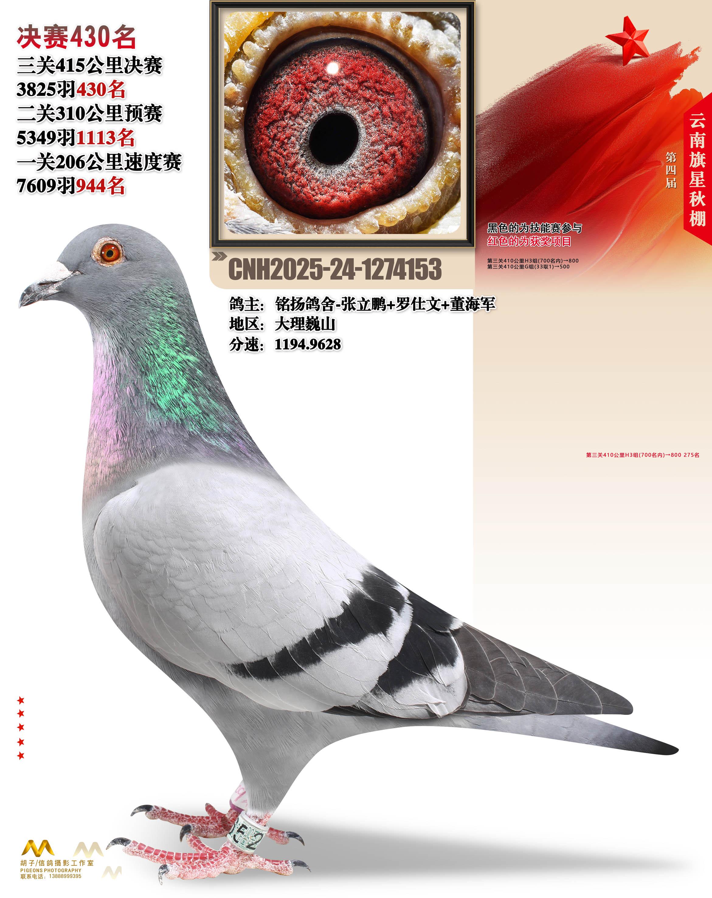 云南大理旗星赛鸽中心2025决赛430名铭扬鸽舍-张立鹏+罗仕文+董海军24-1274153大理巍山获奖鸽展示!