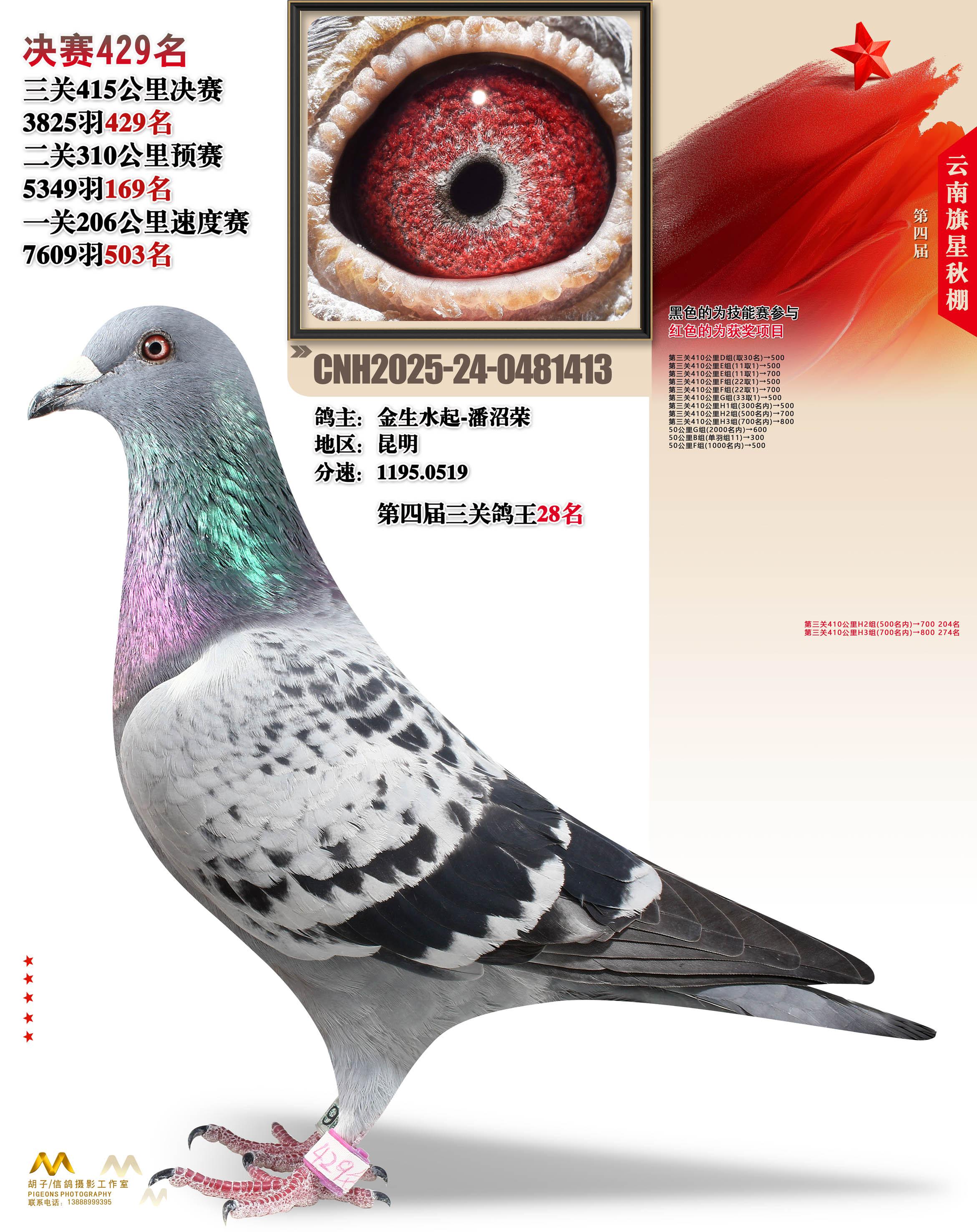 云南大理旗星赛鸽中心2025决赛429名金生水起-潘沼荣24-0481413昆明获奖鸽展示!