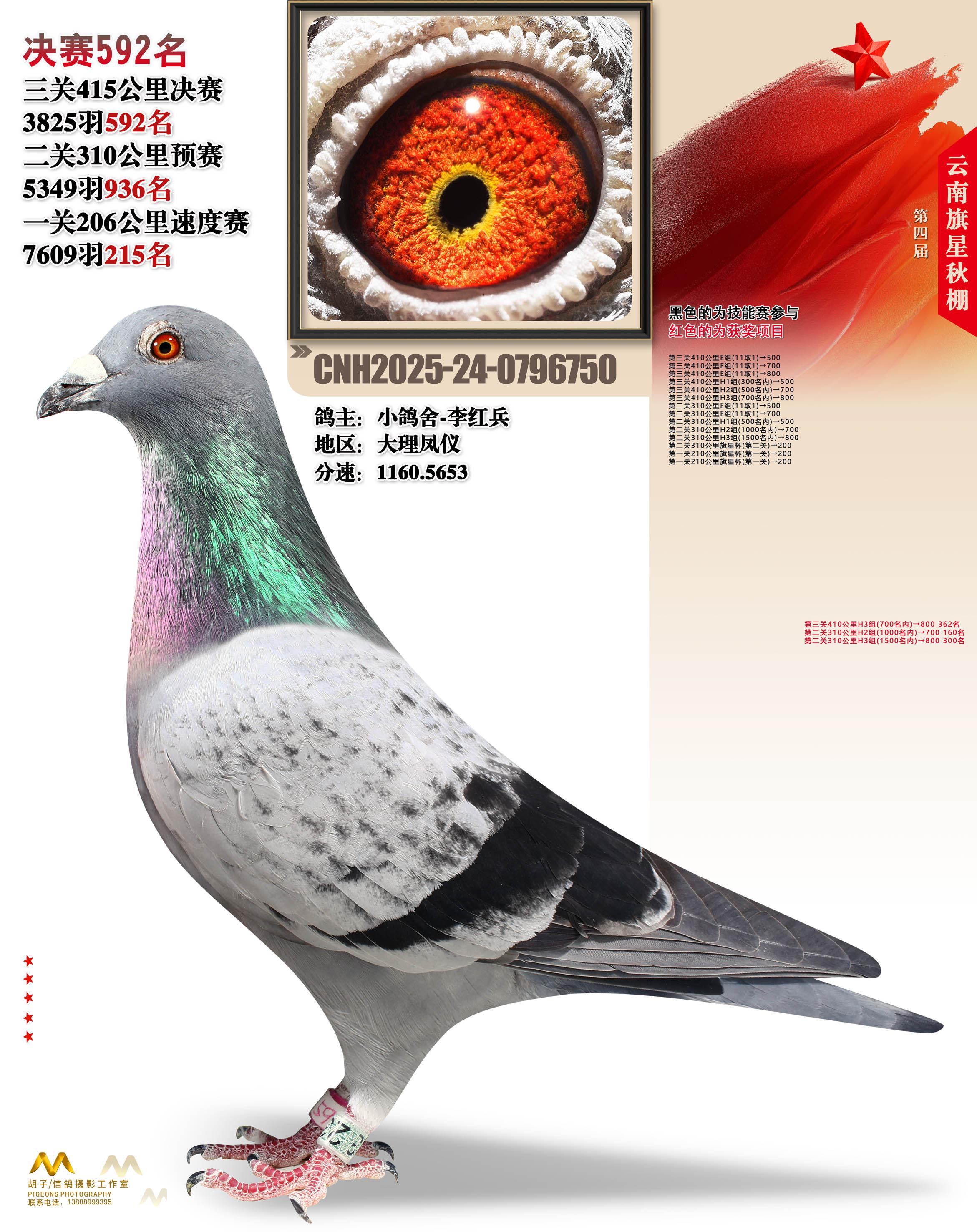 云南大理旗星赛鸽中心2025决赛592名小鸽舍-李红兵24-0796750大理凤仪获奖鸽展示!