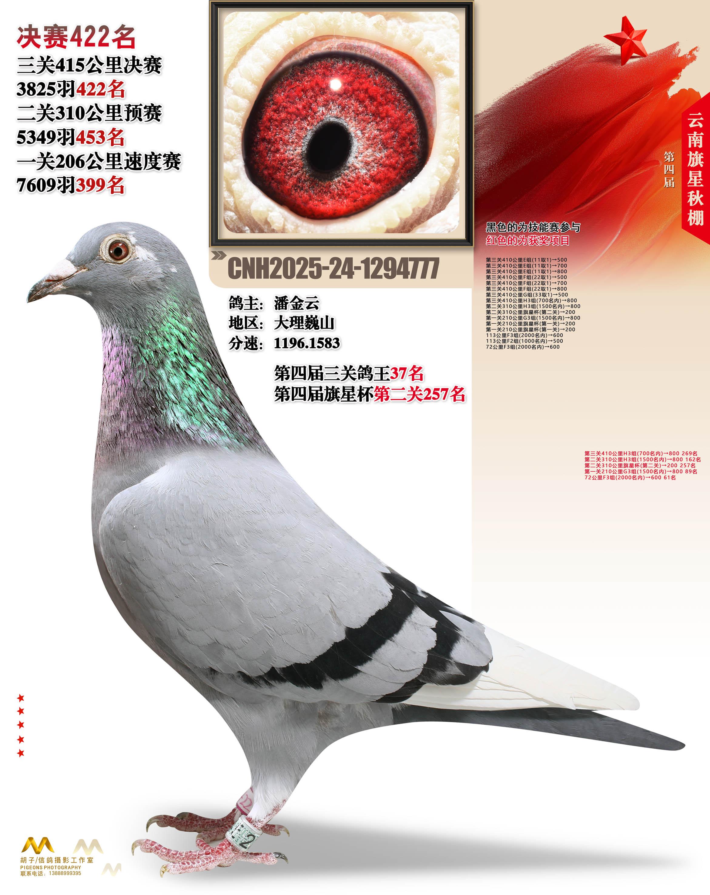 云南大理旗星赛鸽中心2025决赛422名潘金云24-1294777大理巍山获奖鸽展示!