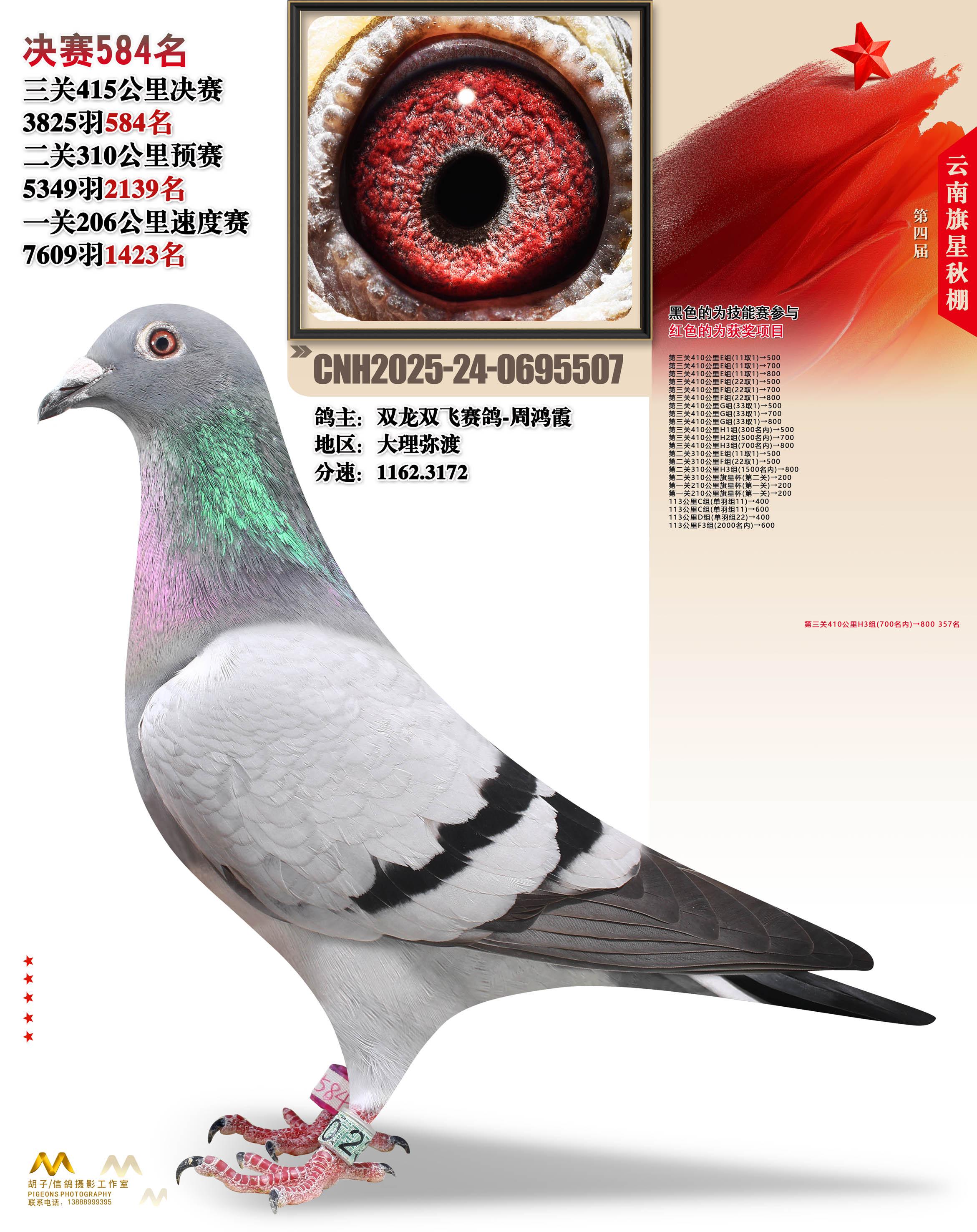 云南大理旗星赛鸽中心2025决赛584名双龙双飞赛鸽-周鸿霞24-0695507大理弥渡获奖鸽展示!