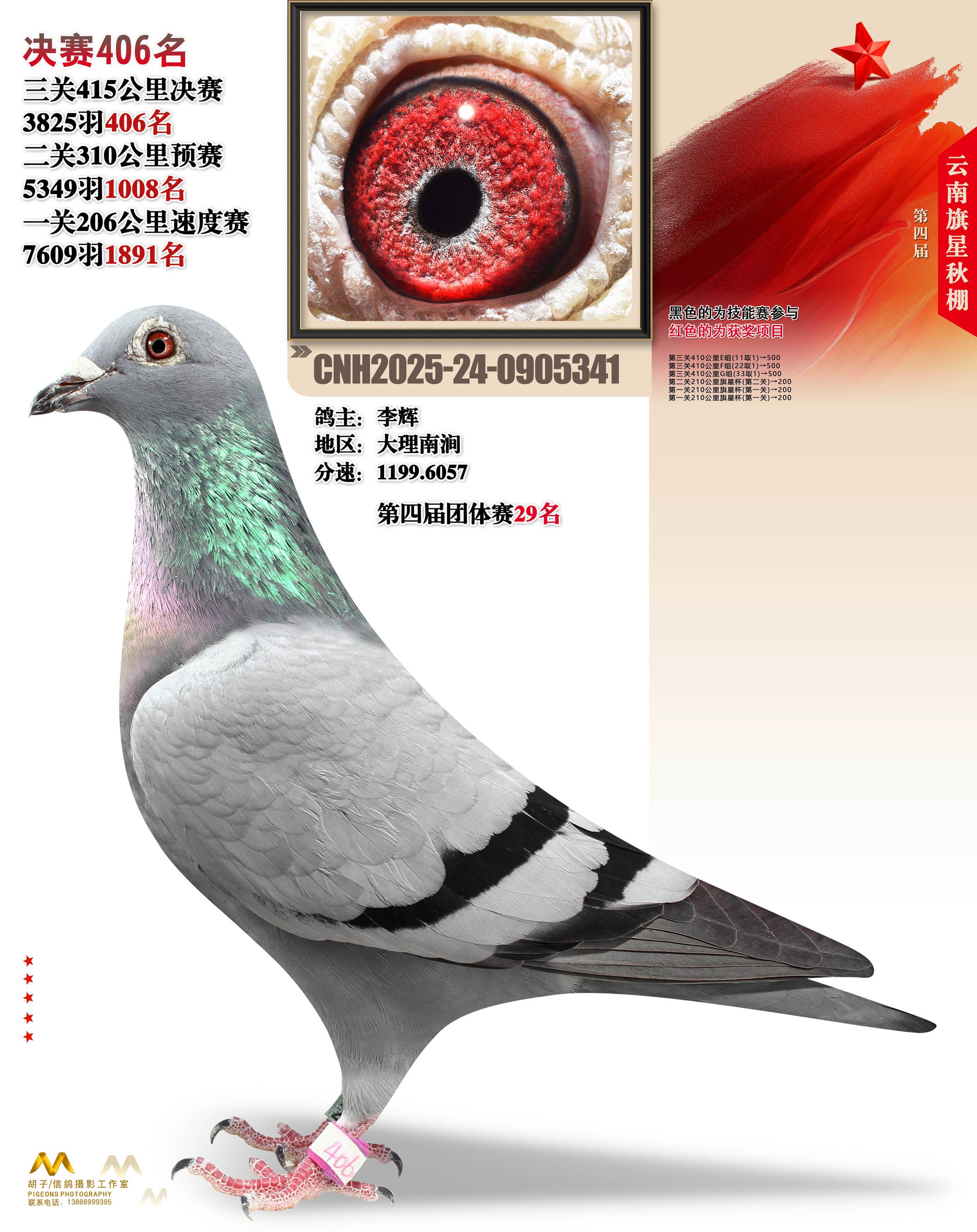 云南大理旗星赛鸽中心2025决赛406名李辉24-0905341大理南涧获奖鸽展示!
