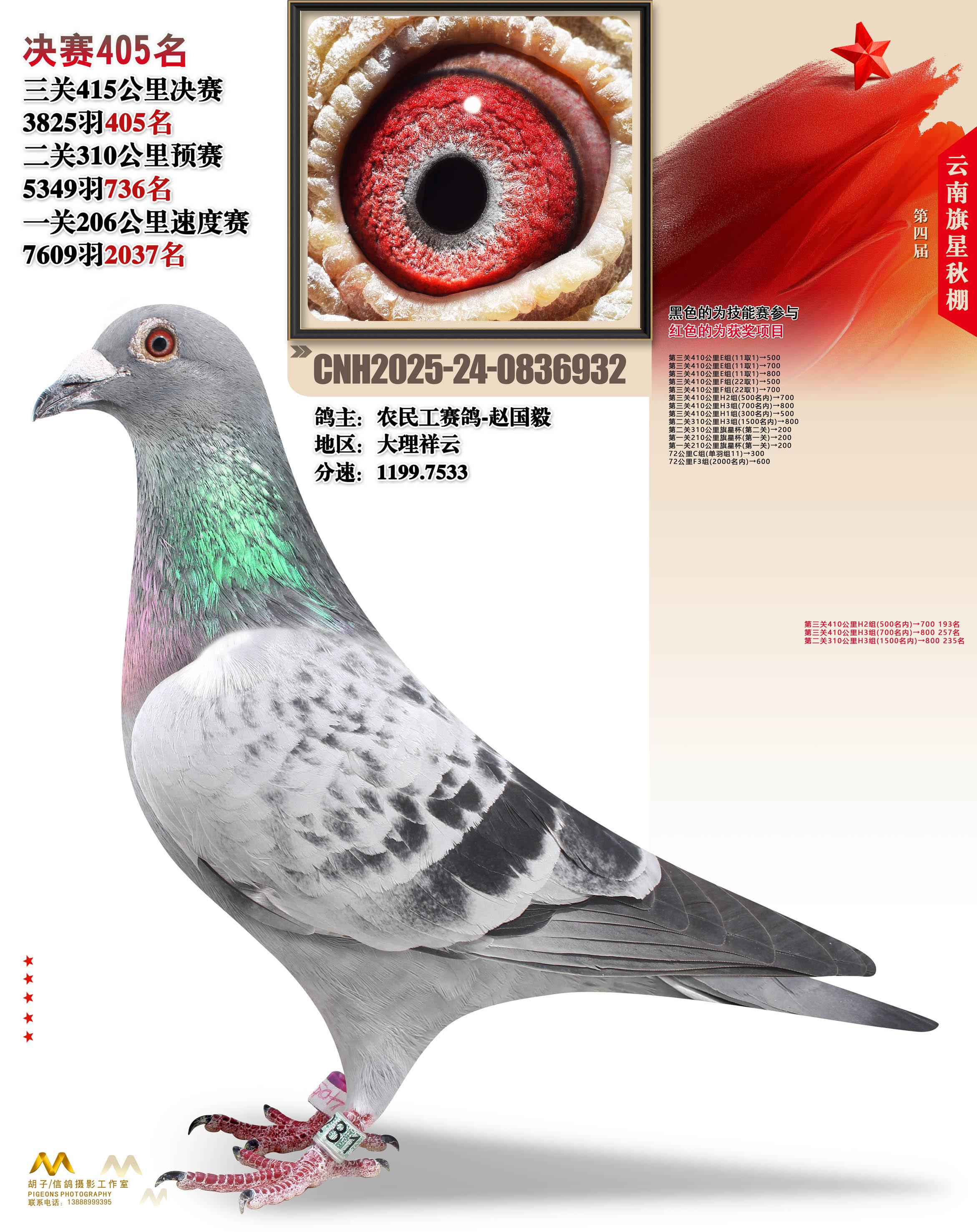 云南大理旗星赛鸽中心2025决赛405名农民工赛鸽-赵国毅24-0836932大理祥云获奖鸽展示!