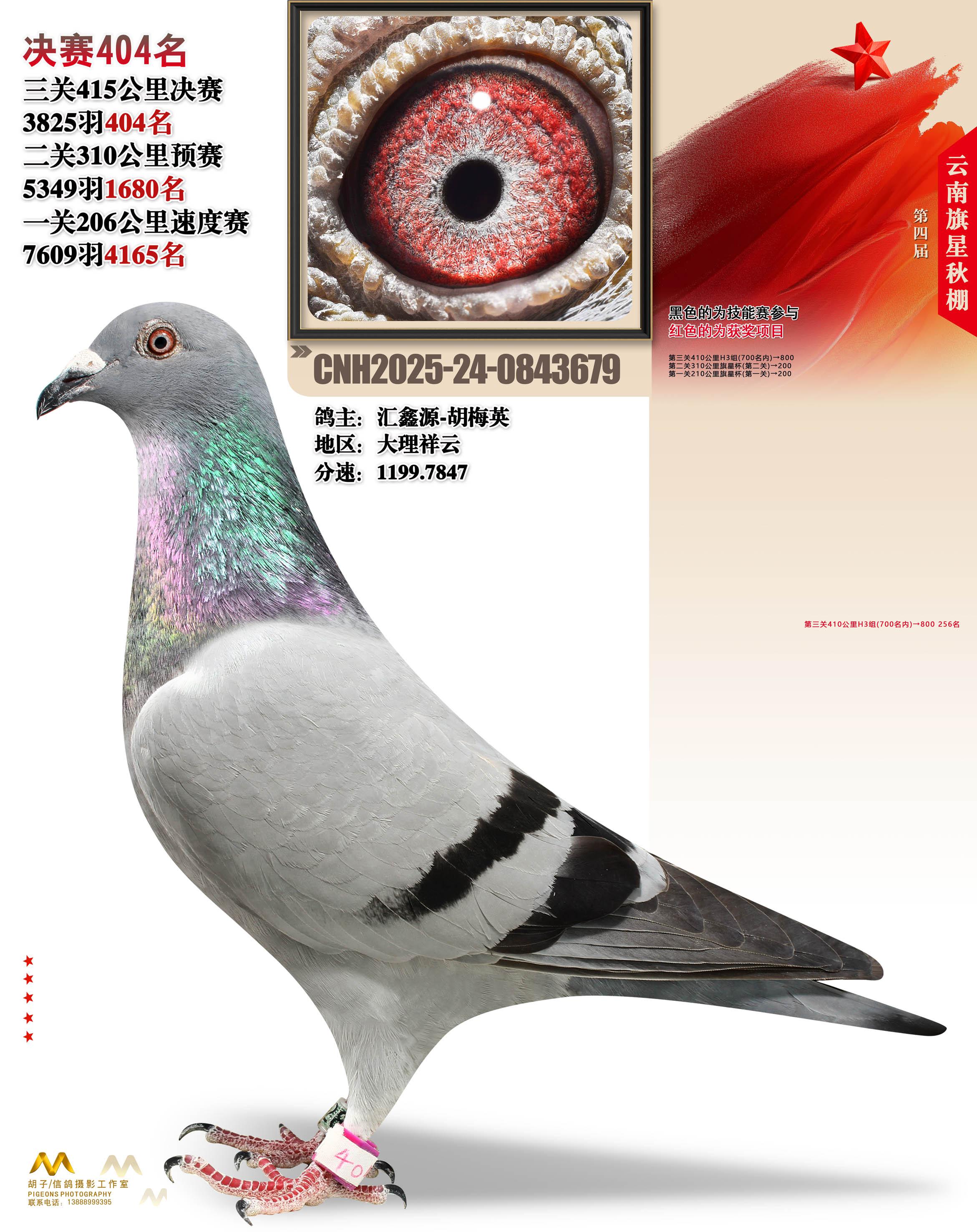 云南大理旗星赛鸽中心2025决赛404名汇鑫源-胡梅英24-0843679大理祥云获奖鸽展示!