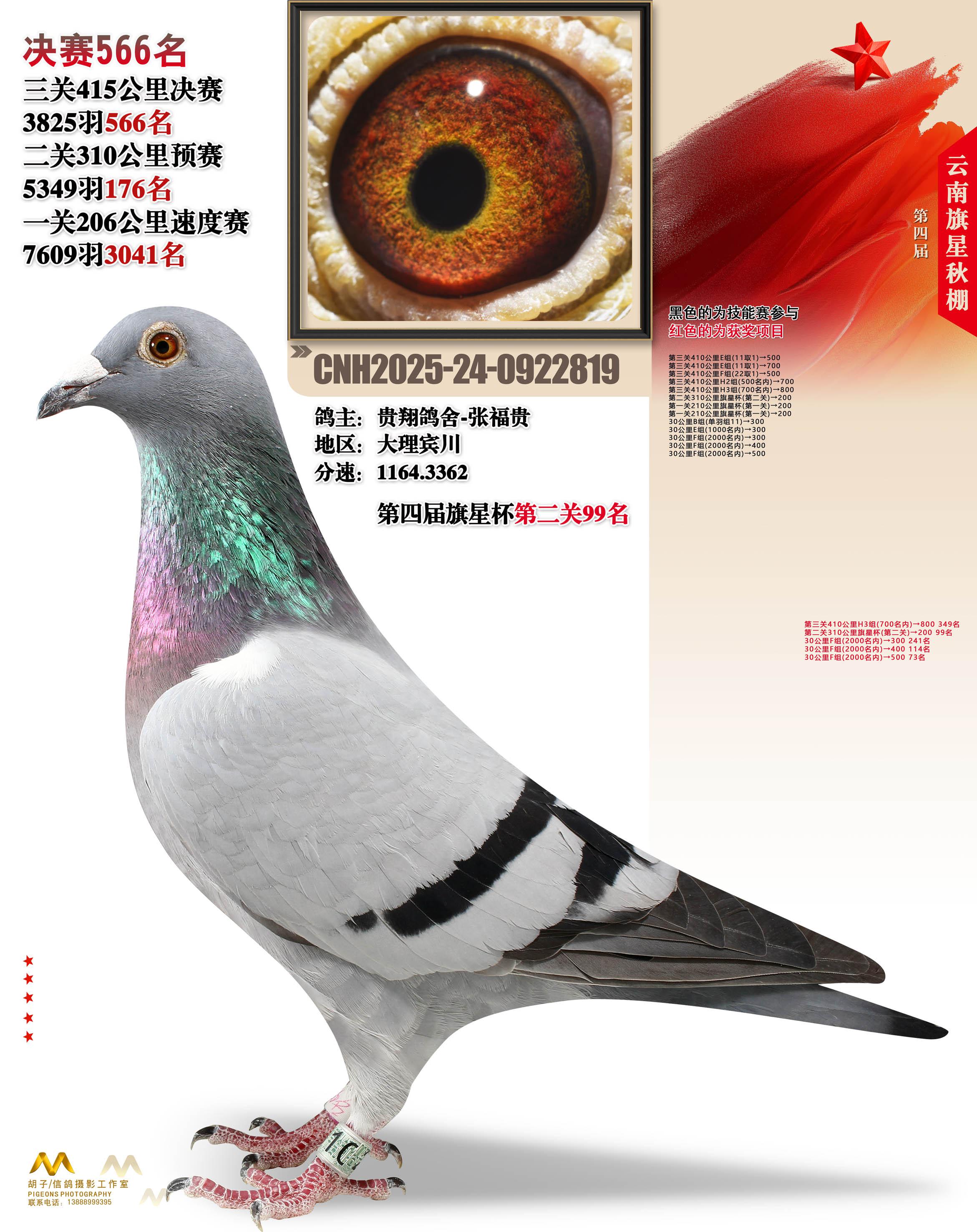 云南大理旗星赛鸽中心2025决赛566名贵翔鸽舍-张福贵24-0922819大理宾川获奖鸽展示!