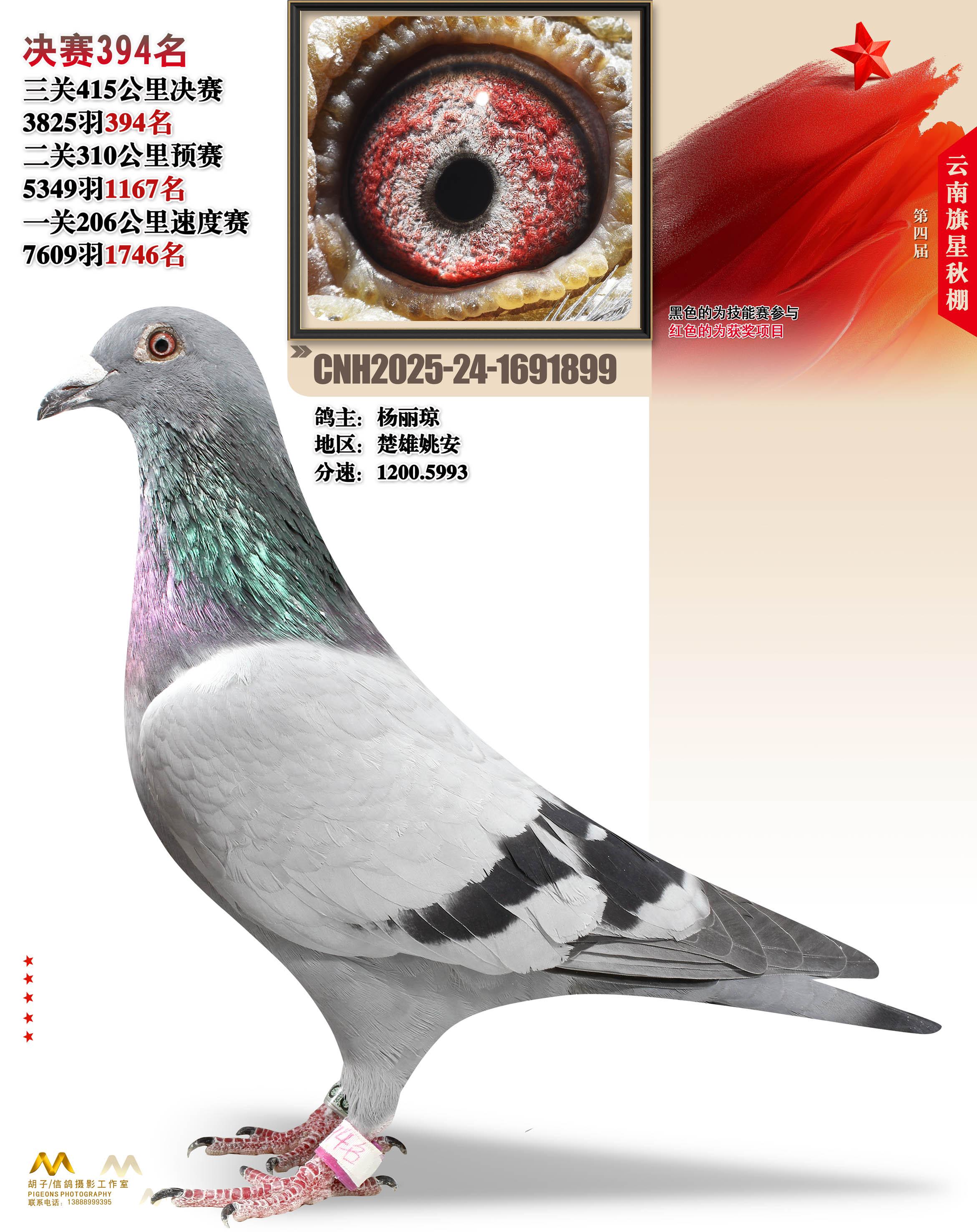 云南大理旗星赛鸽中心2025决赛394名杨丽琼24-1691899楚雄姚安获奖鸽展示!