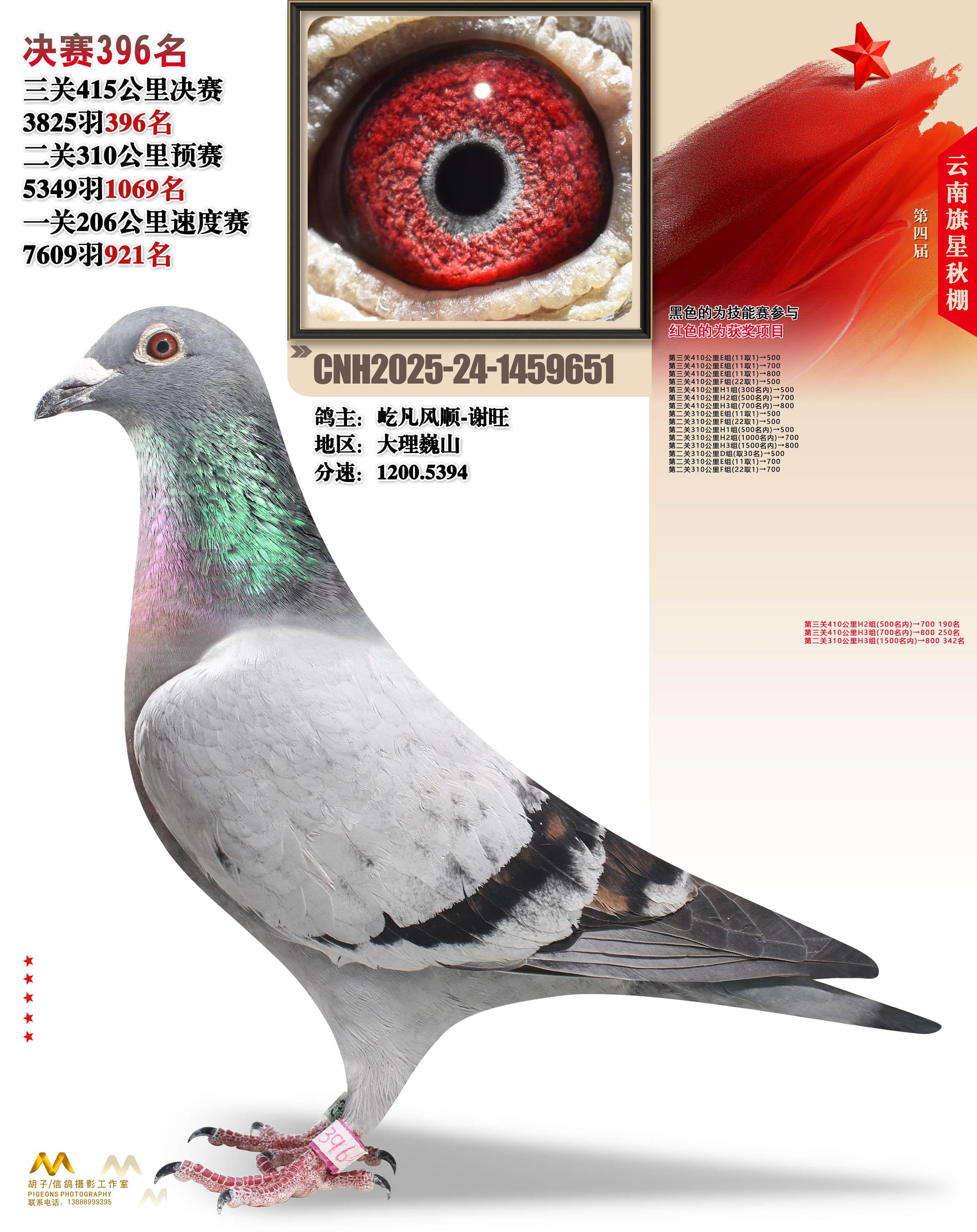 云南大理旗星赛鸽中心2025决赛396名屹凡风顺-谢旺24-1459651大理巍山获奖鸽展示!