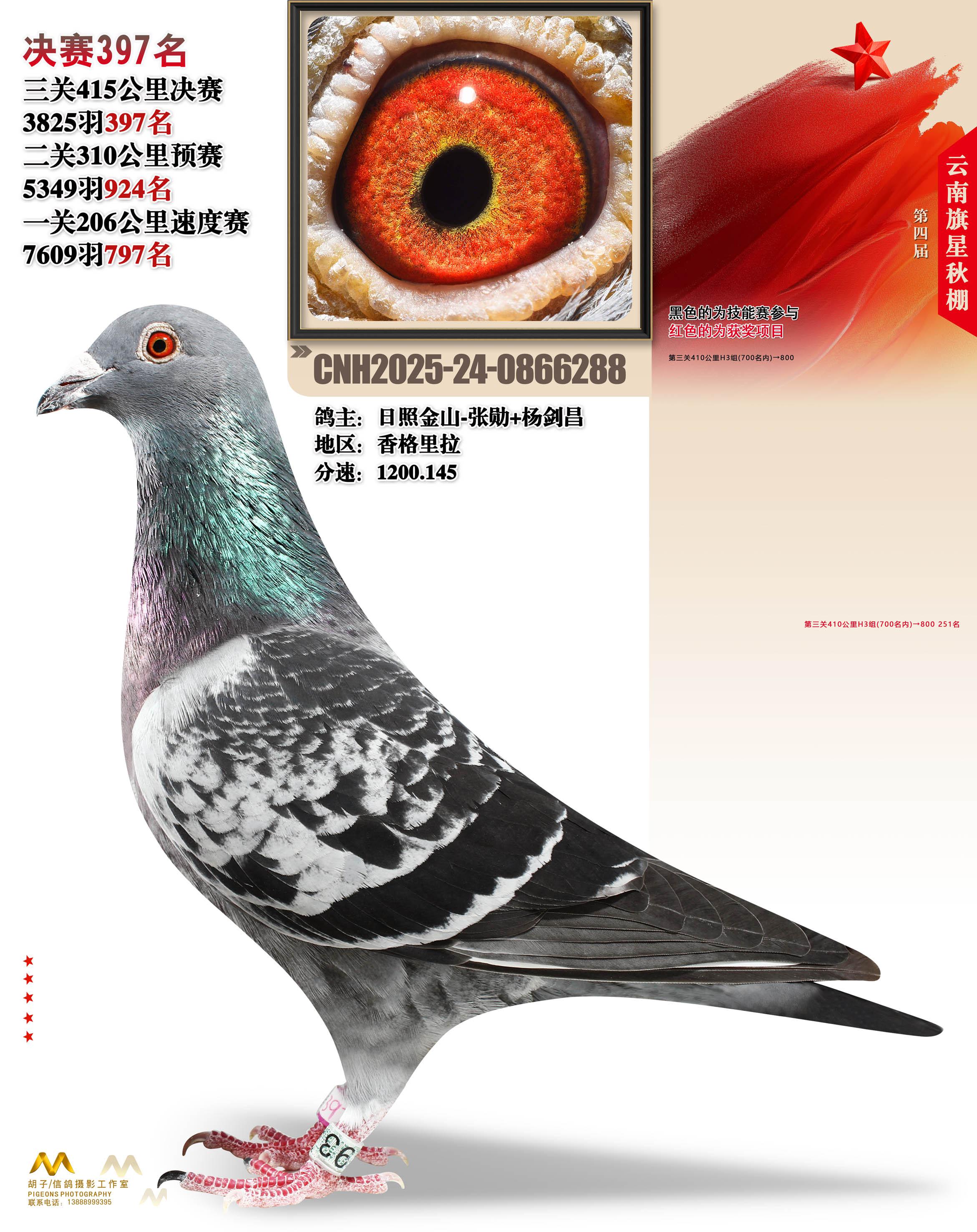 云南大理旗星赛鸽中心2025决赛397名日照金山-张勋+杨剑昌24-0866288香格里拉获奖鸽展示!