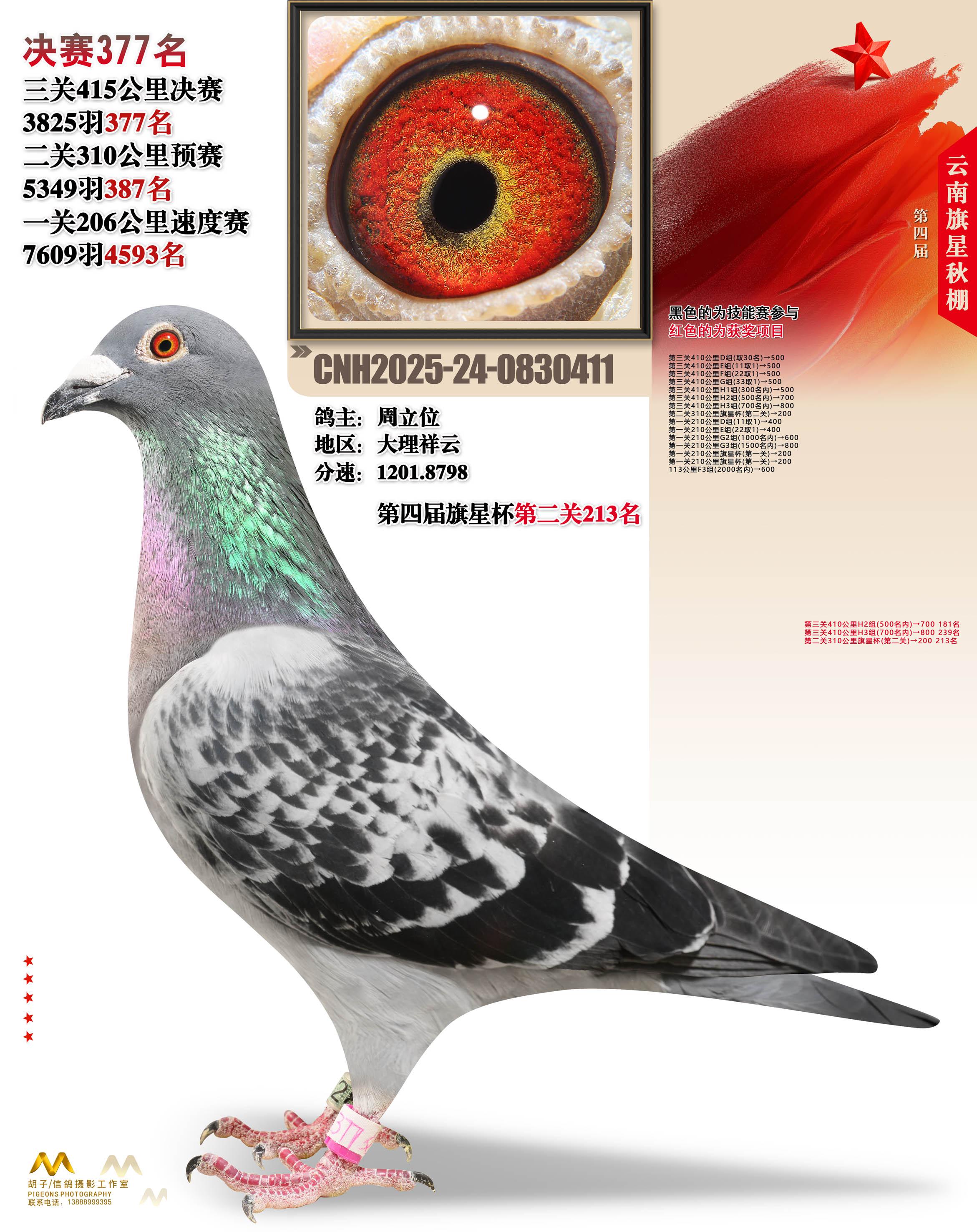 云南大理旗星赛鸽中心2025决赛377名周立位24-0830411大理祥云获奖鸽展示!