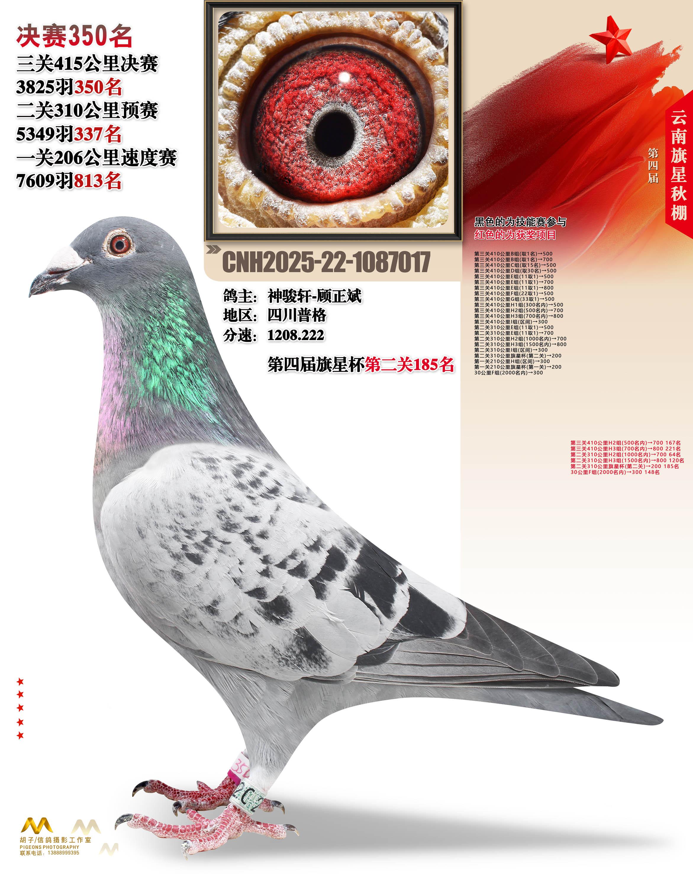 云南大理旗星赛鸽中心2025决赛350名神骏轩-顾正斌22-1087017四川普格获奖鸽展示!