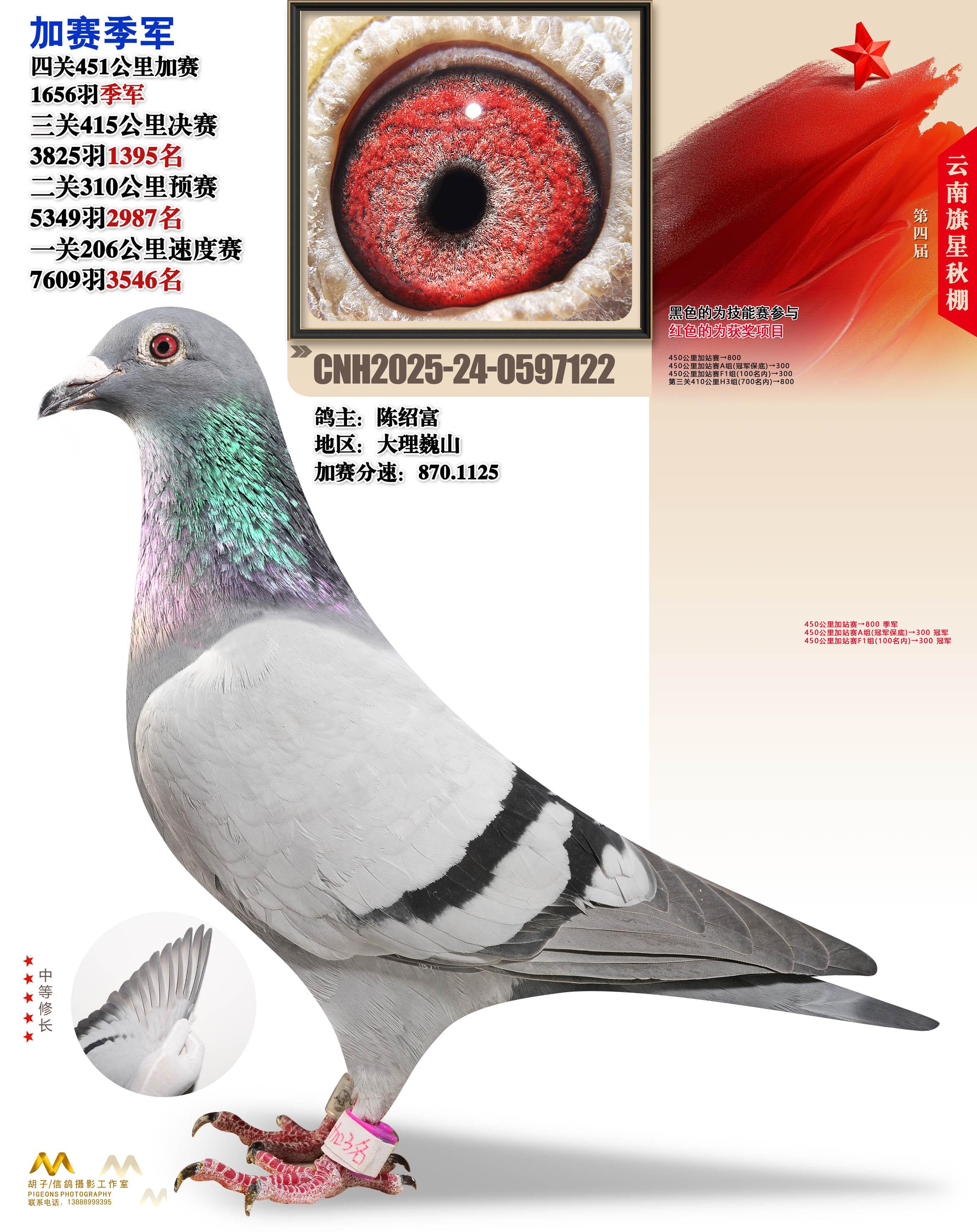 云南大理旗星赛鸽中心2025加站赛3名陈绍富24-0597122大理巍山获奖鸽展示!