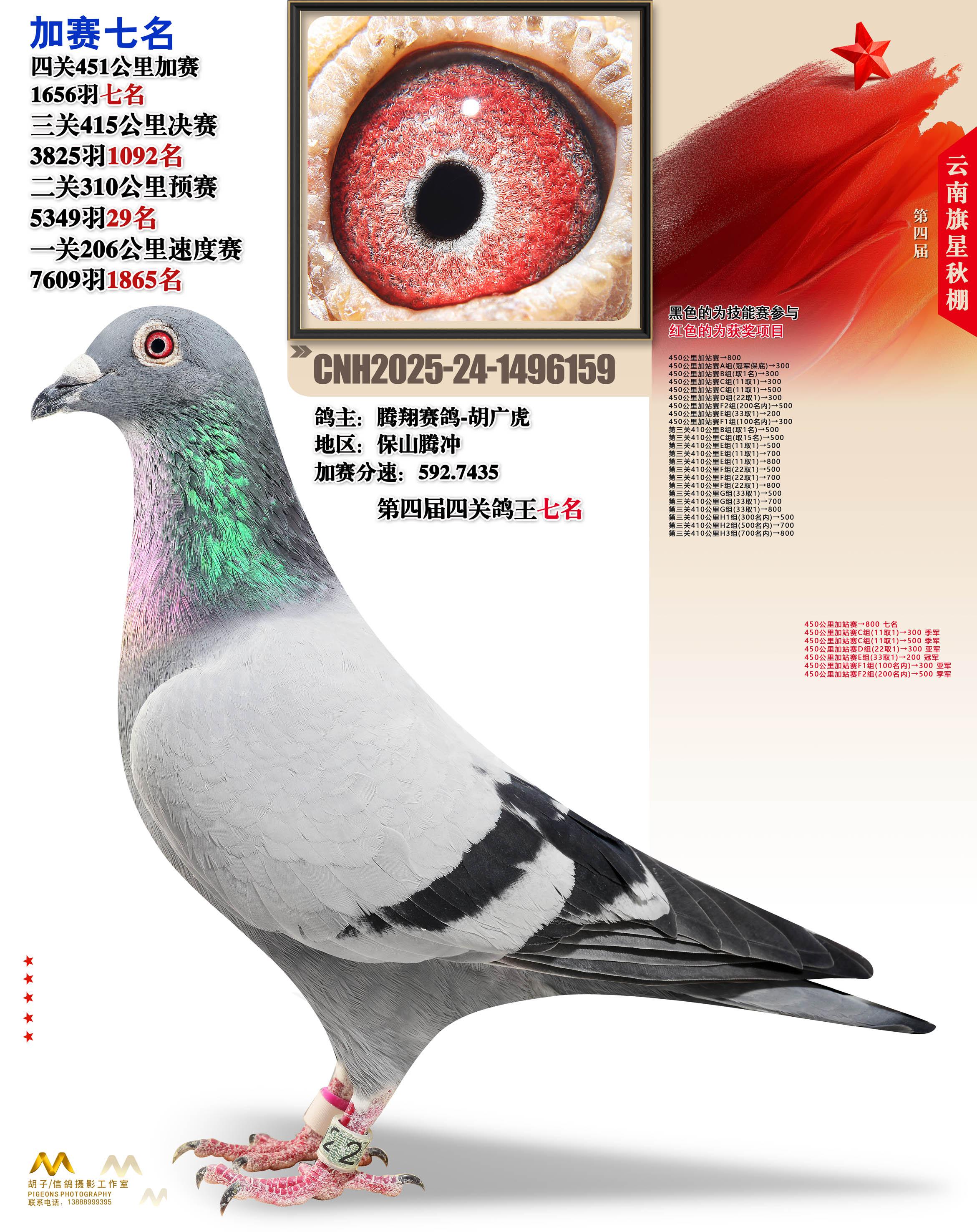 云南大理旗星赛鸽中心2025加站赛7名腾翔赛鸽-胡广虎24-1496159保山腾冲获奖鸽展示!