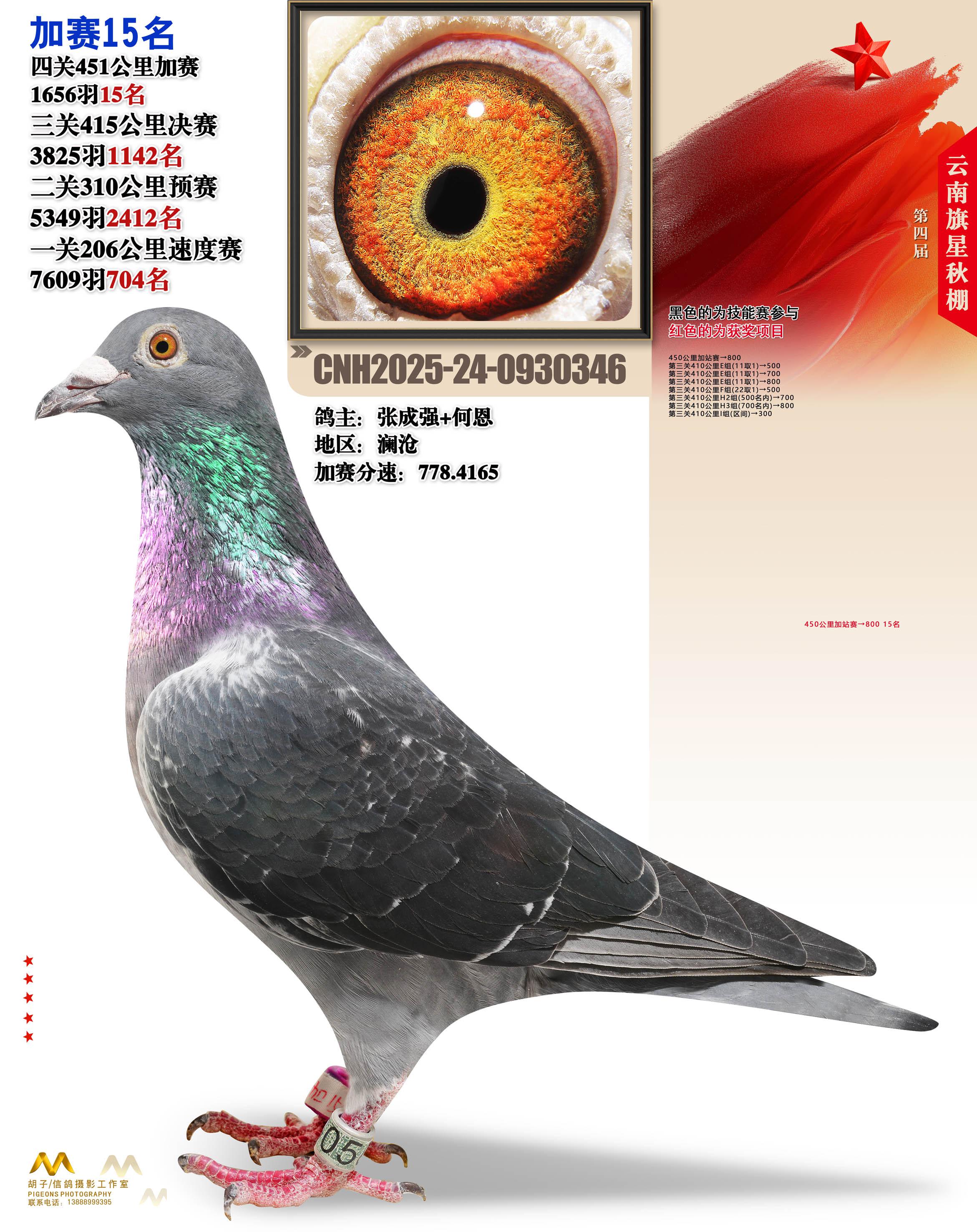 云南大理旗星赛鸽中心2025加站赛15名张成强+何恩24-0930346澜沧获奖鸽展示!