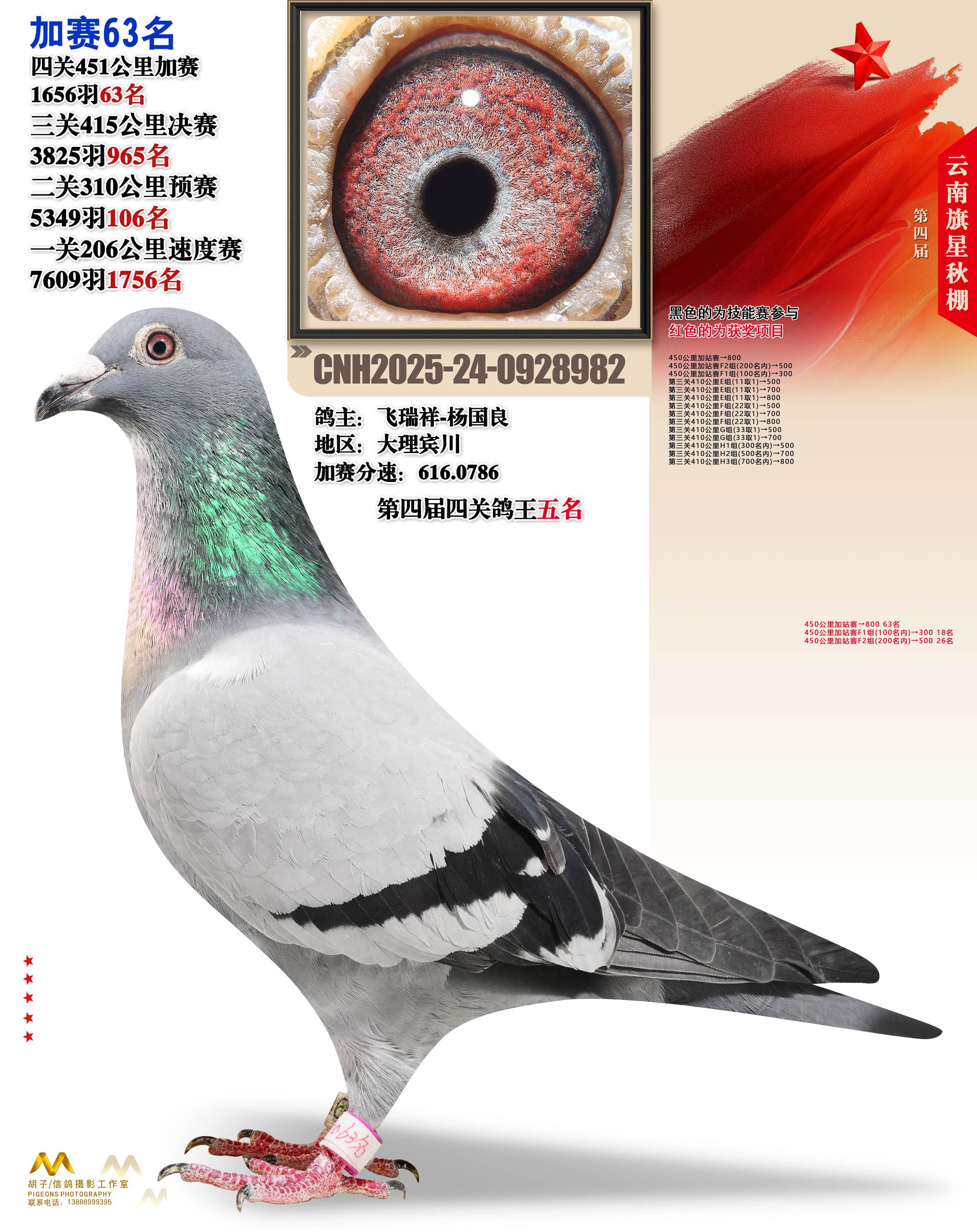 云南大理旗星赛鸽中心2025加站赛63名飞瑞祥-杨国良24-0928982大理宾川获奖鸽展示!