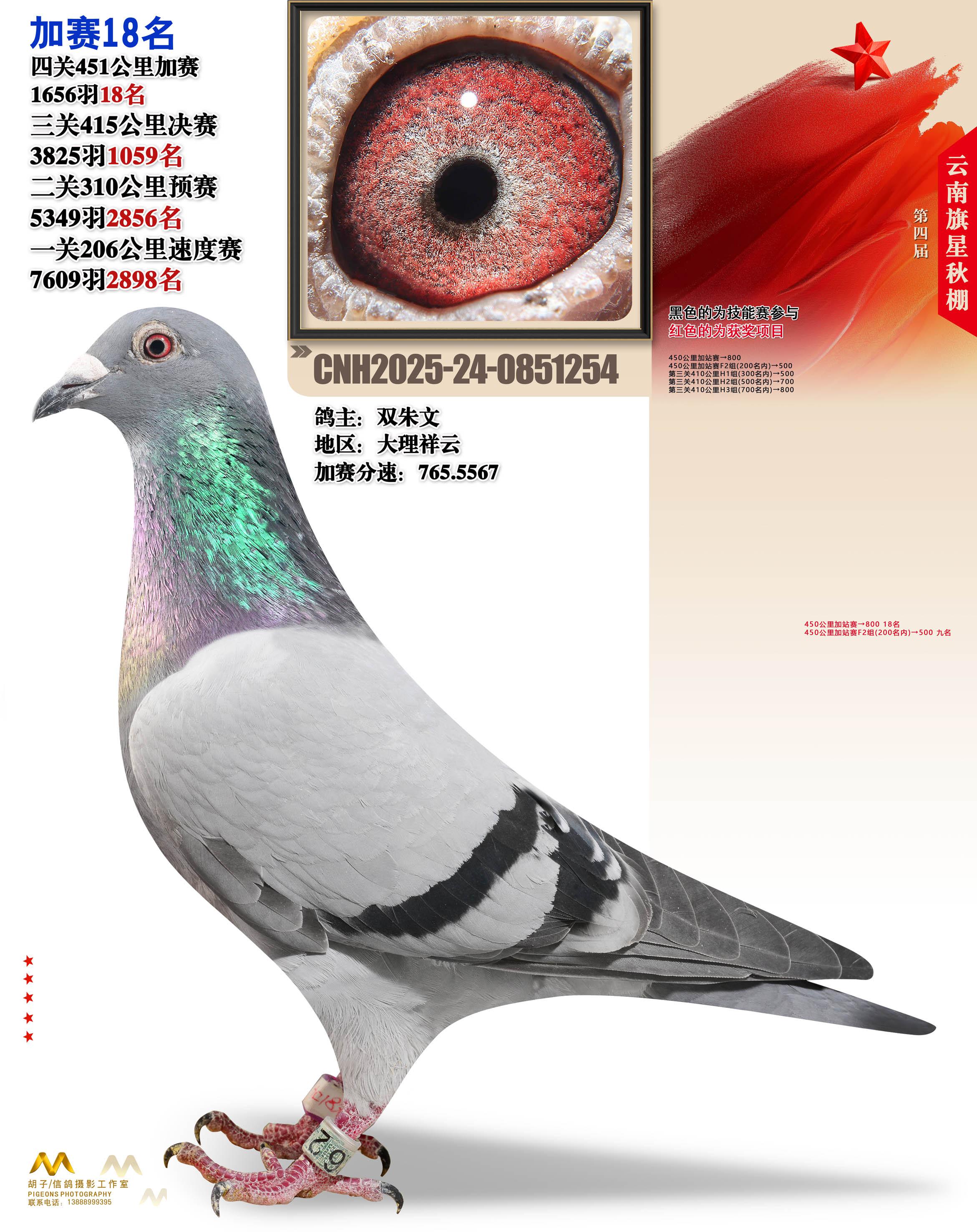 云南大理旗星赛鸽中心2025加站赛18名双朱文24-0851254大理祥云获奖鸽展示!