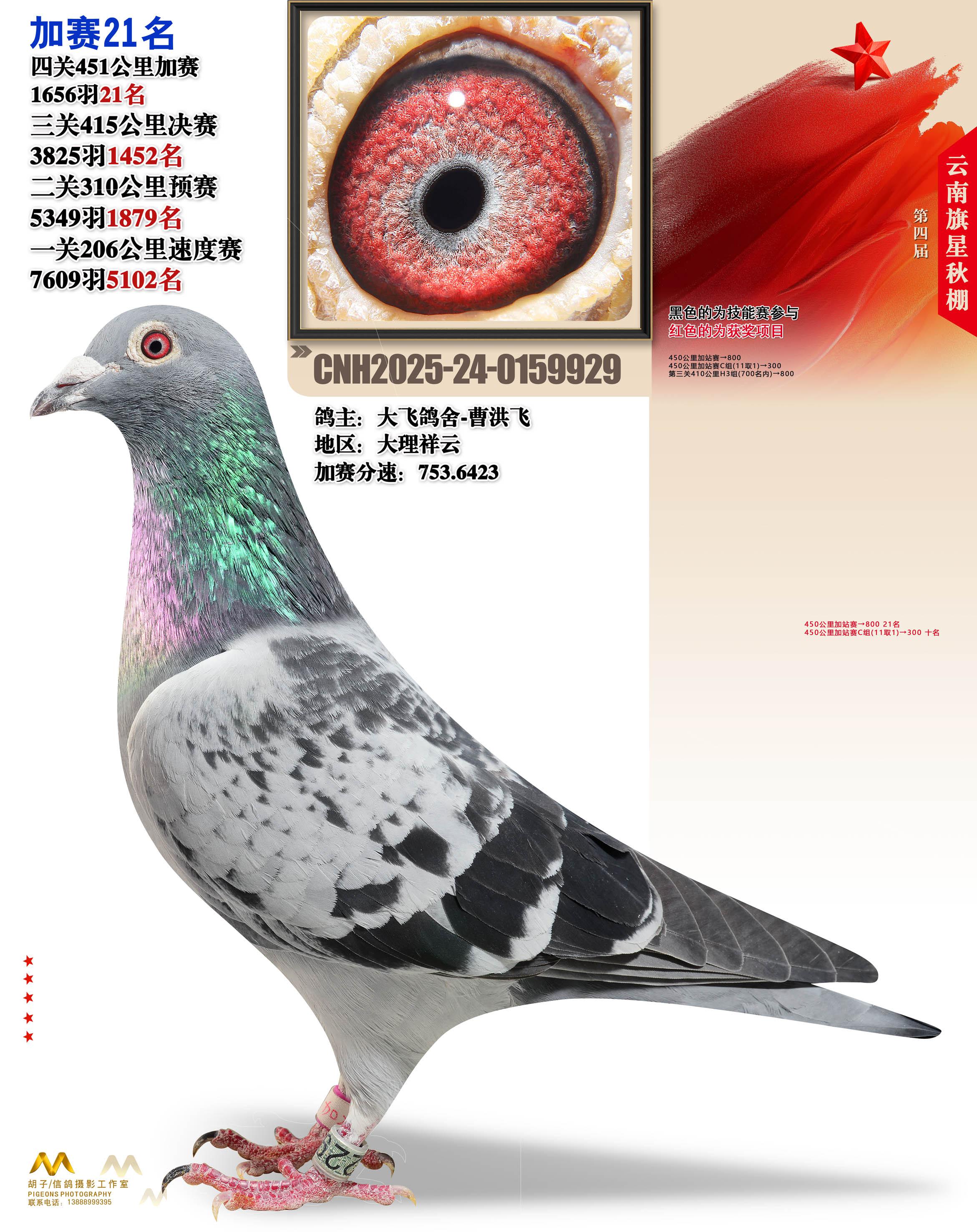 云南大理旗星赛鸽中心2025加站赛21名大飞鸽舍-曹洪飞24-0159929大理祥云获奖鸽展示!