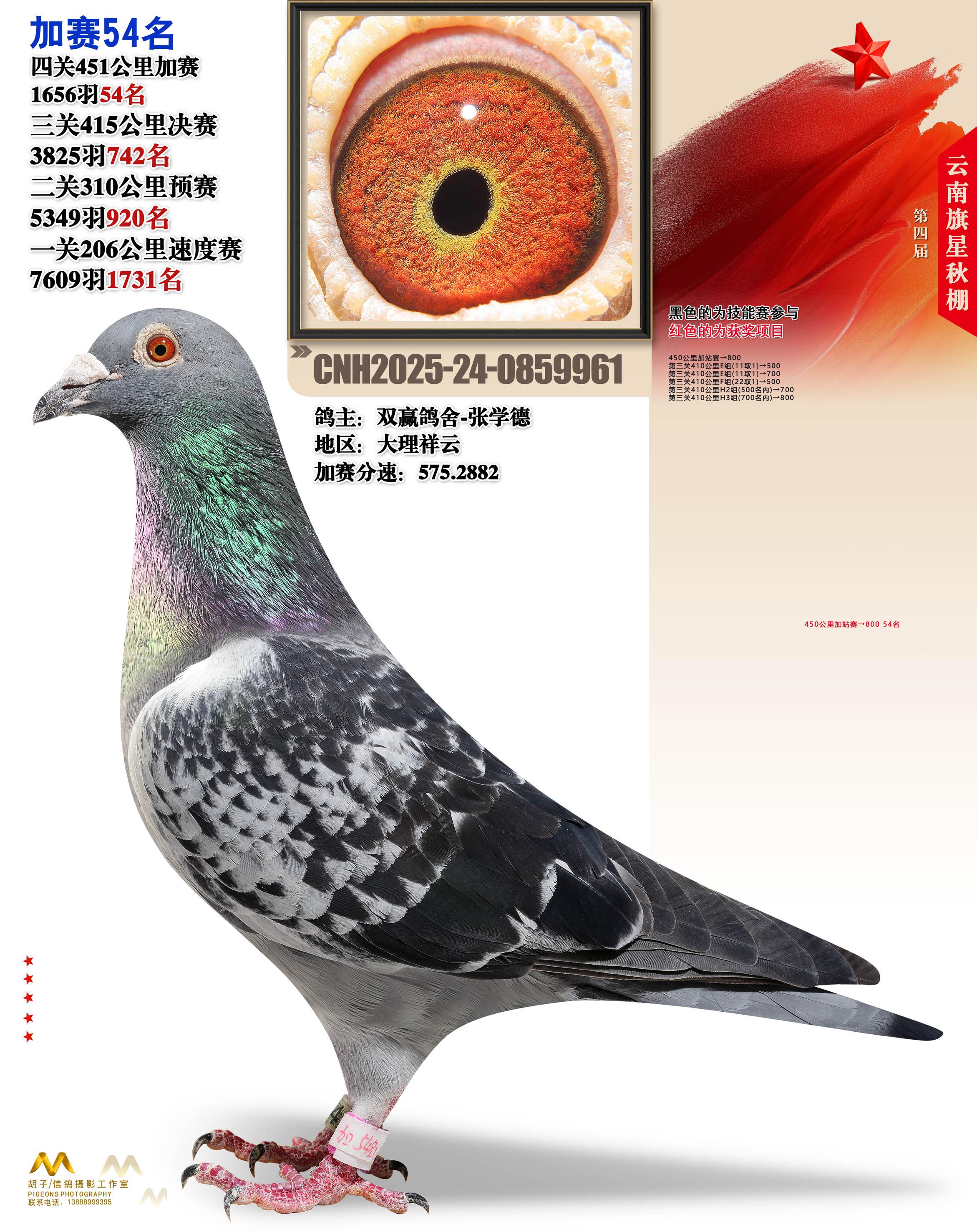 云南大理旗星赛鸽中心2025加站赛54名双赢鸽舍-张学德24-0859961大理祥云获奖鸽展示!