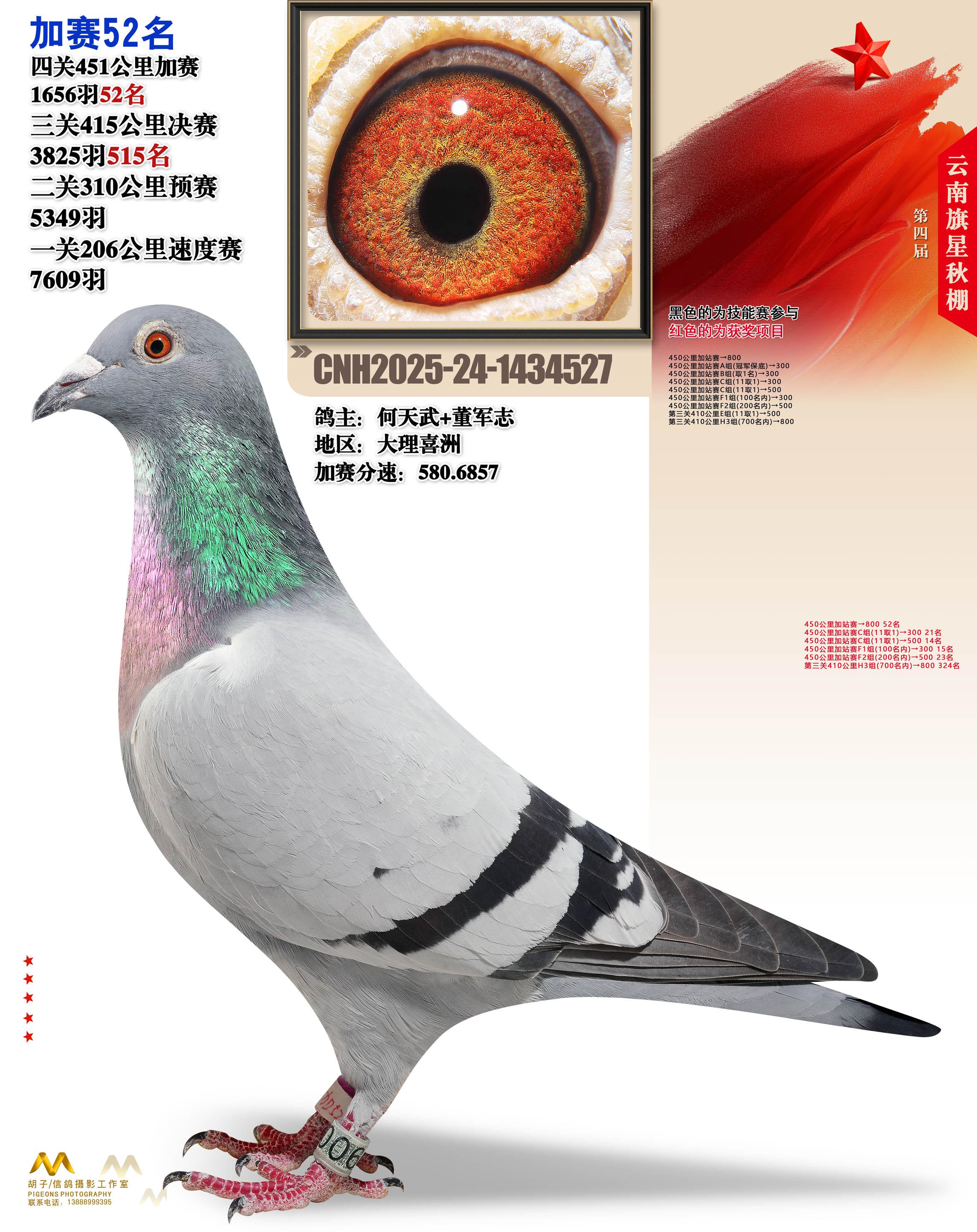 云南大理旗星赛鸽中心2025加站赛52名何天武+董军志24-1434527大理喜洲获奖鸽展示!