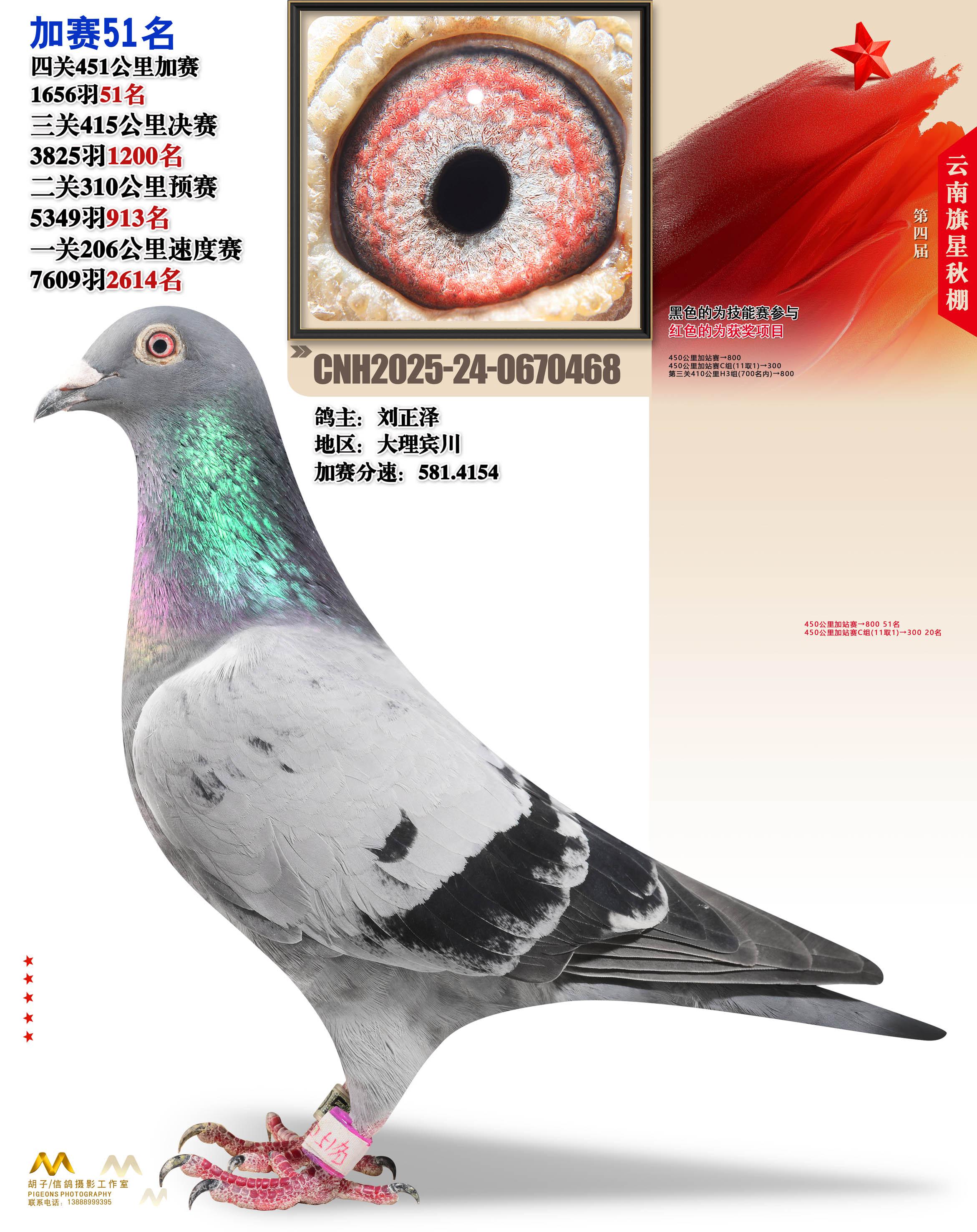 云南大理旗星赛鸽中心2025加站赛51名刘正泽24-0670468大理宾川获奖鸽展示!
