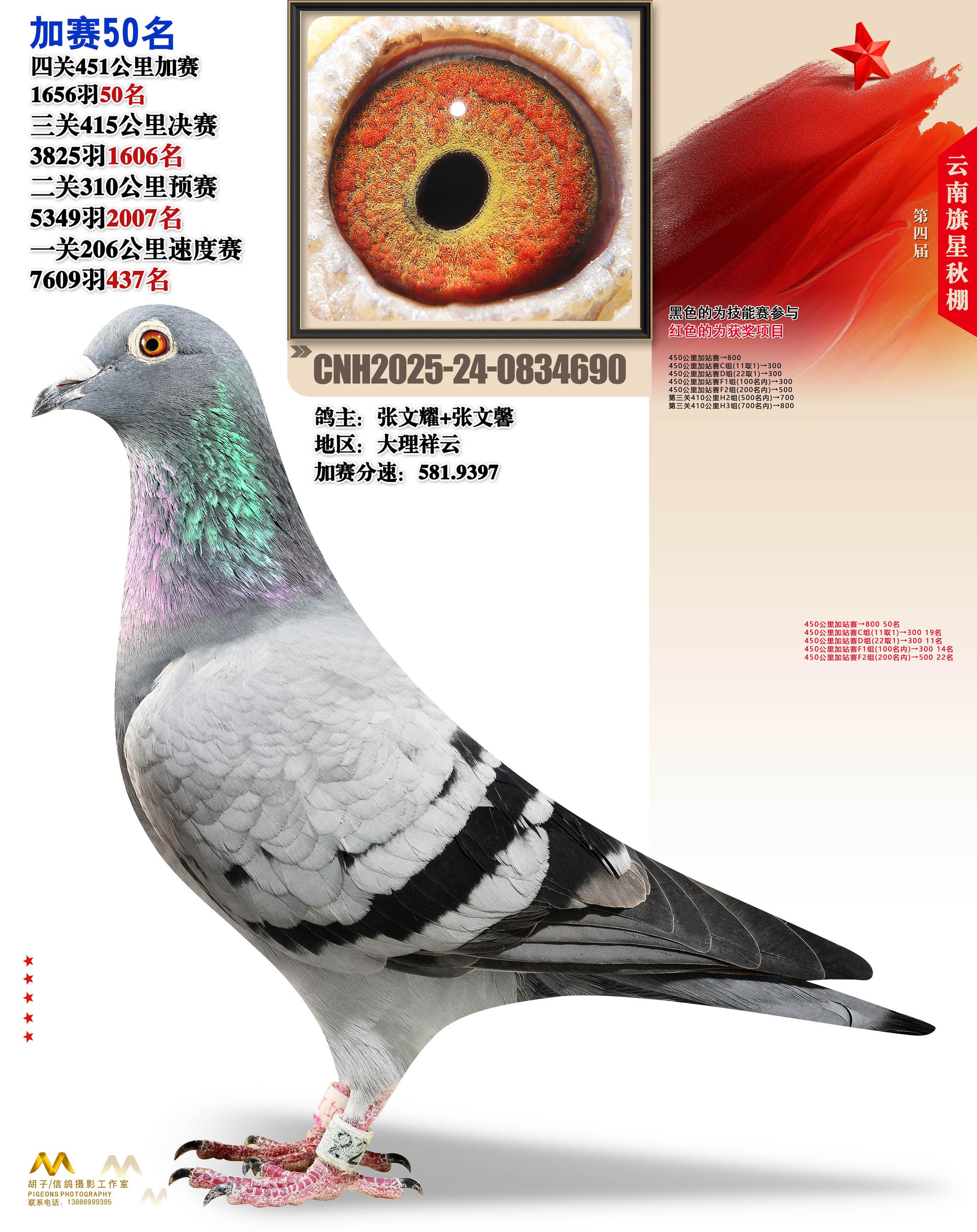 云南大理旗星赛鸽中心2025加站赛50名张文耀+张文馨24-0834690大理祥云获奖鸽展示!
