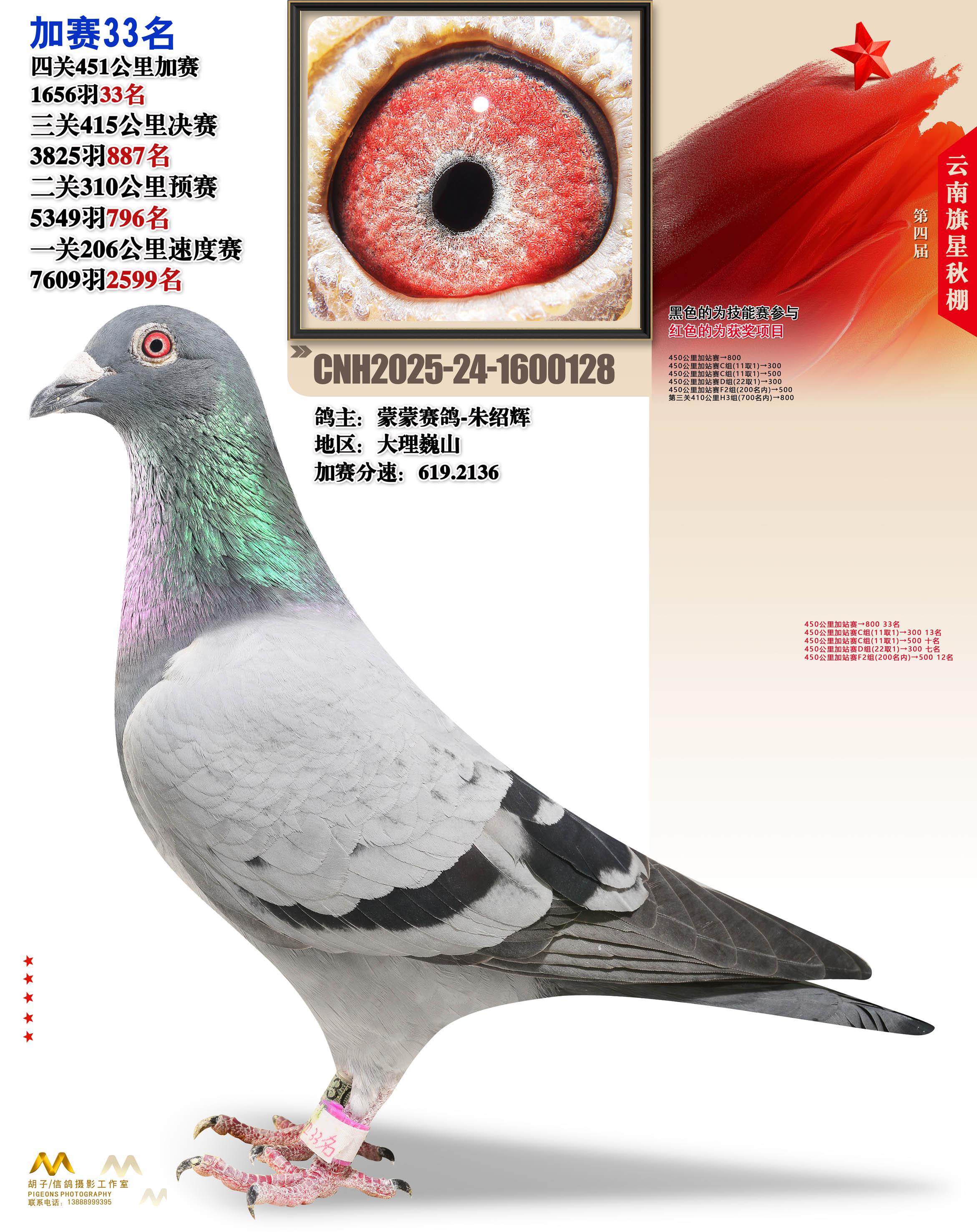 云南大理旗星赛鸽中心2025加站赛33名蒙蒙赛鸽-朱绍辉24-1600128大理巍山获奖鸽展示!