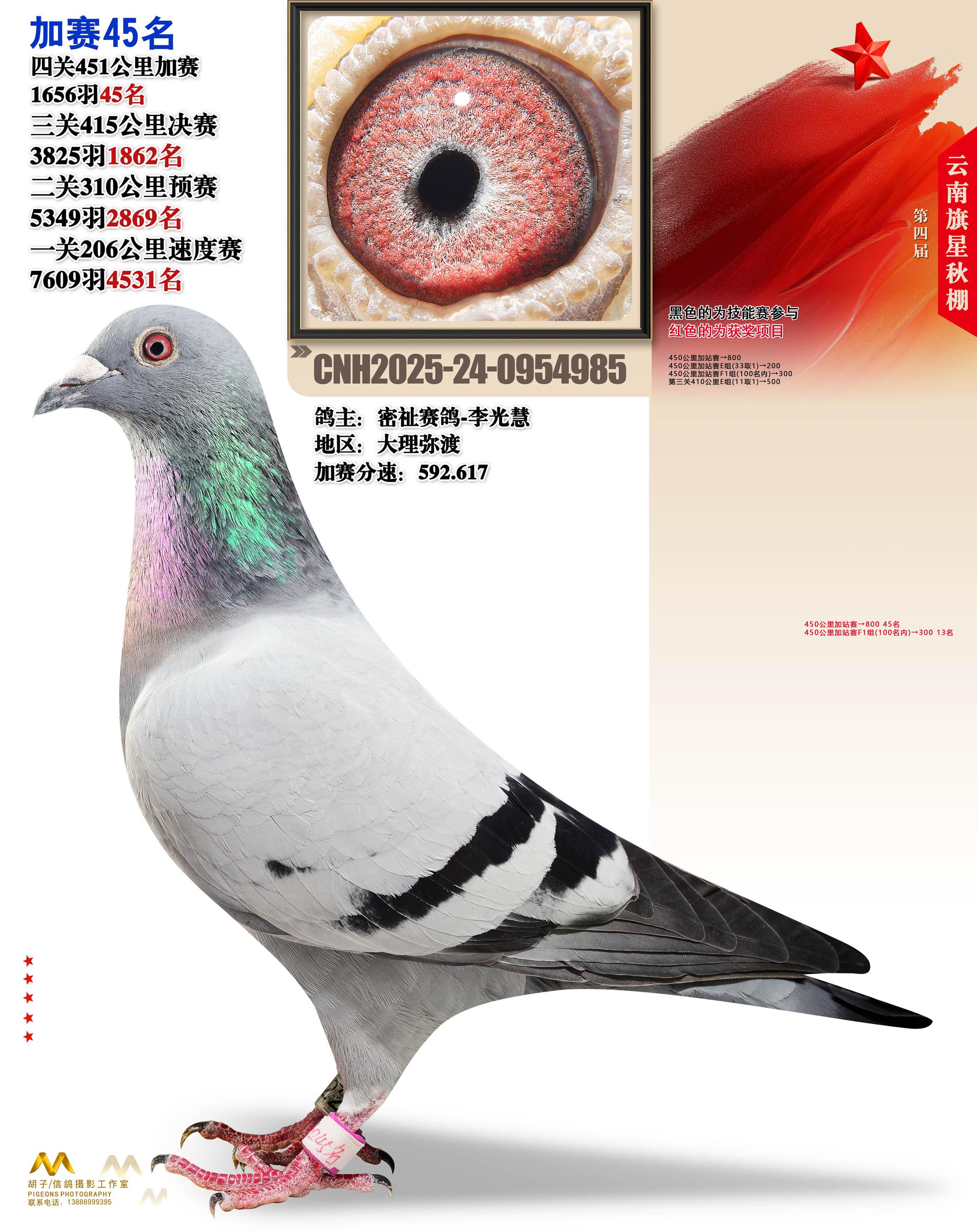 云南大理旗星赛鸽中心2025加站赛45名密祉赛鸽-李光慧24-0954985大理弥渡获奖鸽展示!
