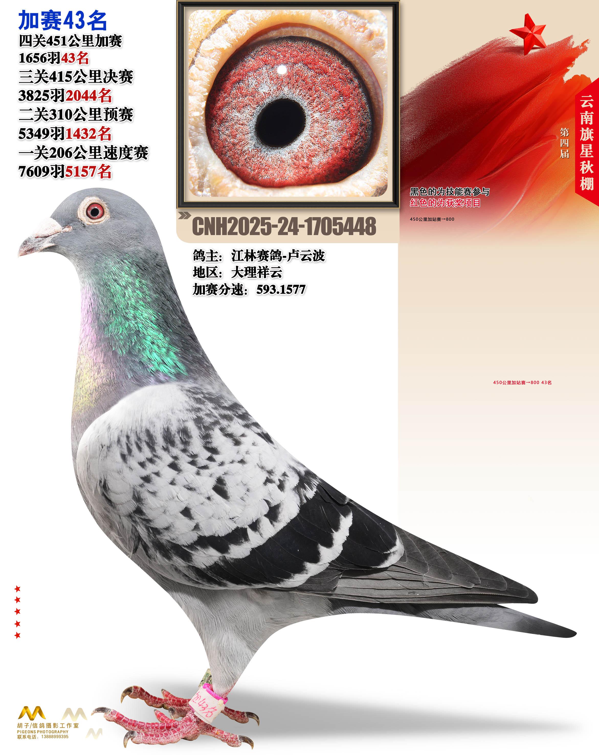 云南大理旗星赛鸽中心2025加站赛43名江林赛鸽-卢云波24-1705448大理祥云获奖鸽展示!