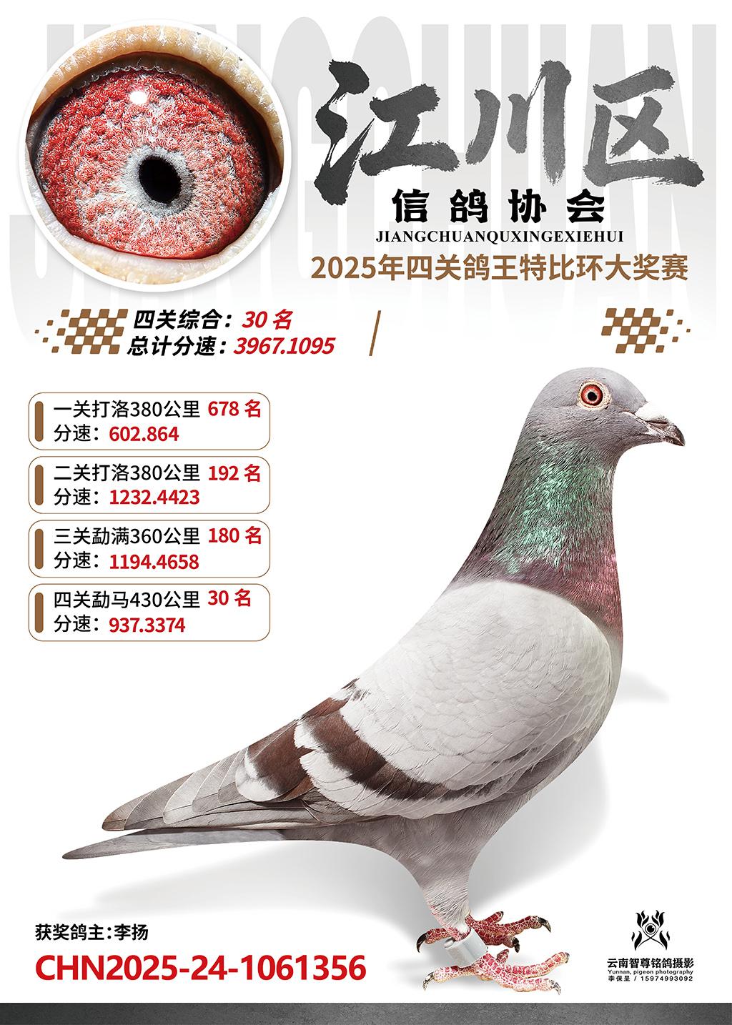 江川区信鸽协会2025综合30名李扬2025-24-1061356获奖鸽展示!