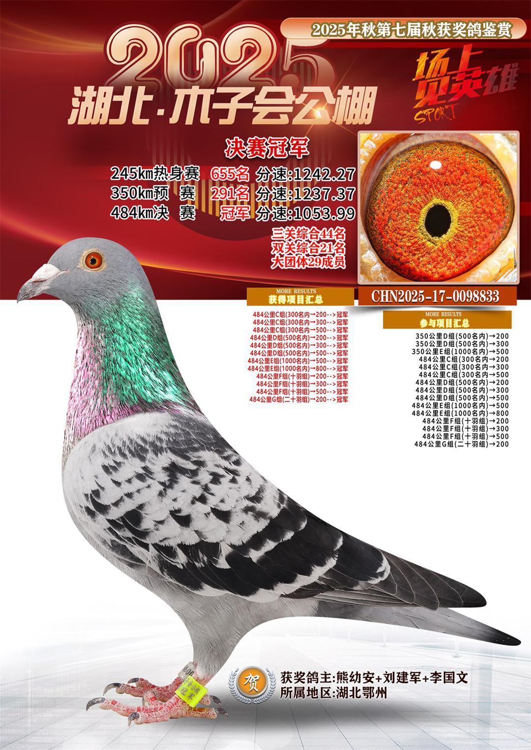 湖北省木子会公棚2025决赛1名熊幼安+刘建军+李国文17-0098833湖北鄂州获奖鸽展示!