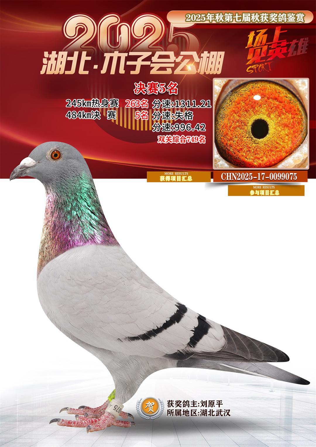 湖北省木子会公棚2025决赛5名刘原平17-0099075湖北武汉获奖鸽展示!