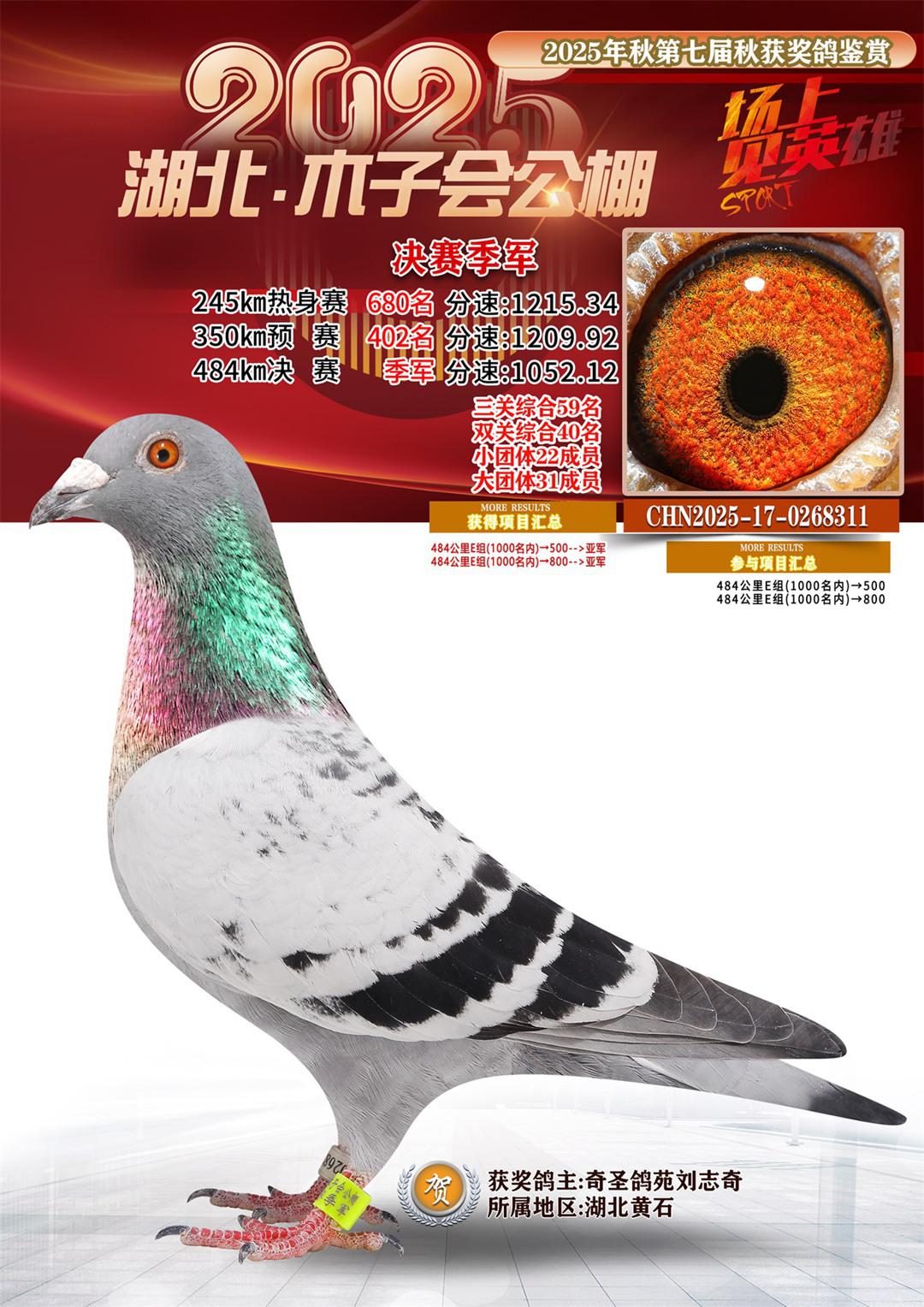 湖北省木子会公棚2025决赛3名奇圣鸽苑刘志奇17-0268311湖北黄石获奖鸽展示!
