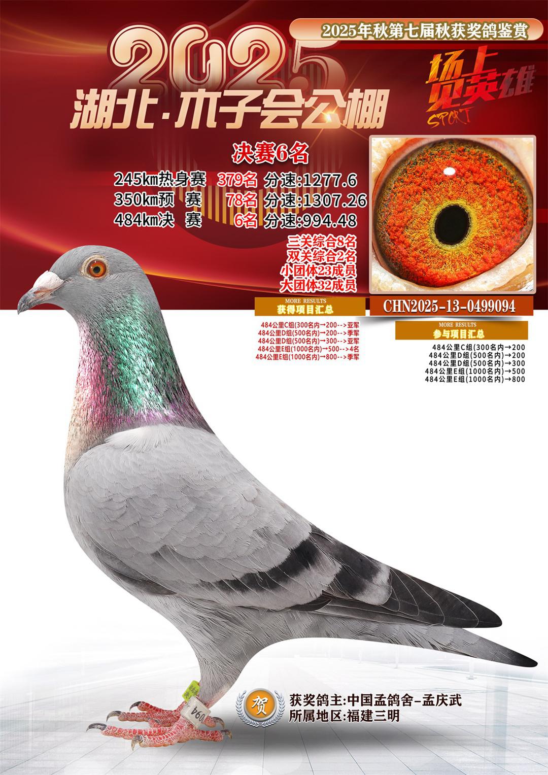 湖北省木子会公棚2025决赛6名中国孟鸽舍-孟庆武13-0499094福建三明获奖鸽展示!
