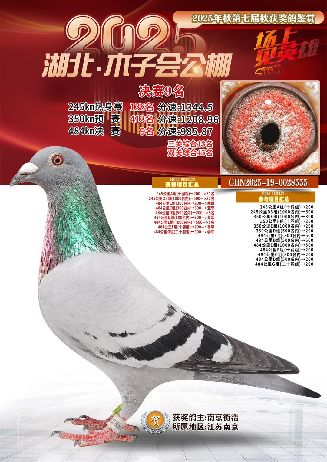 湖北省木子会公棚2025决赛9名南京衡浩19-0028555江苏南京获奖鸽展示!