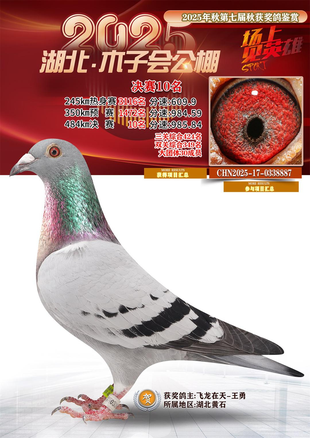 湖北省木子会公棚2025决赛10名飞龙在天-王勇17-0338887湖北黄石获奖鸽展示!