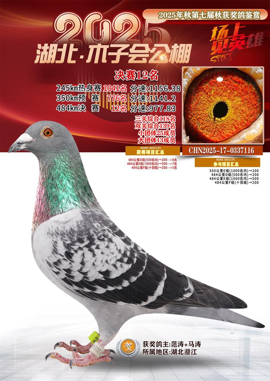 湖北省木子会公棚2025决赛12名范涛+马涛17-0337116湖北潜江获奖鸽展示!
