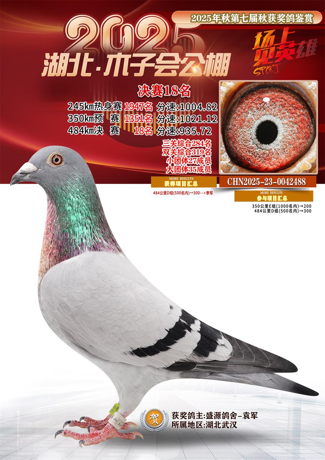 湖北省木子会公棚2025决赛18名盛源鸽舍-袁军23-0042488湖北武汉获奖鸽展示!