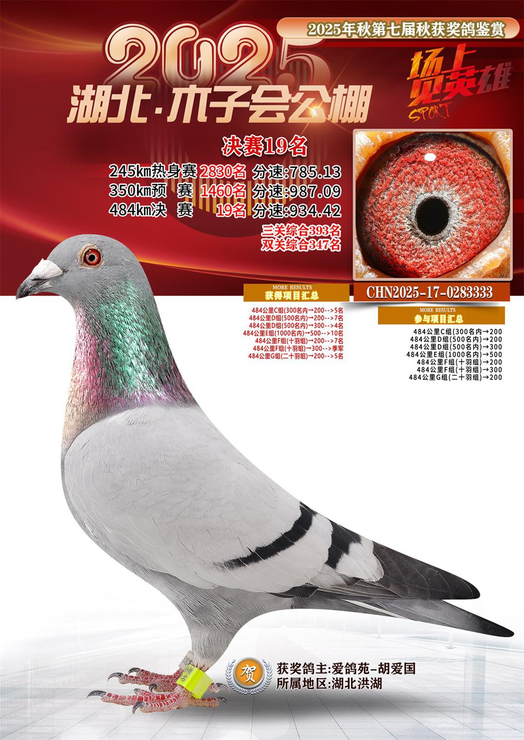 湖北省木子会公棚2025决赛19名爱鸽苑-胡爱国17-0283333湖北洪湖获奖鸽展示!