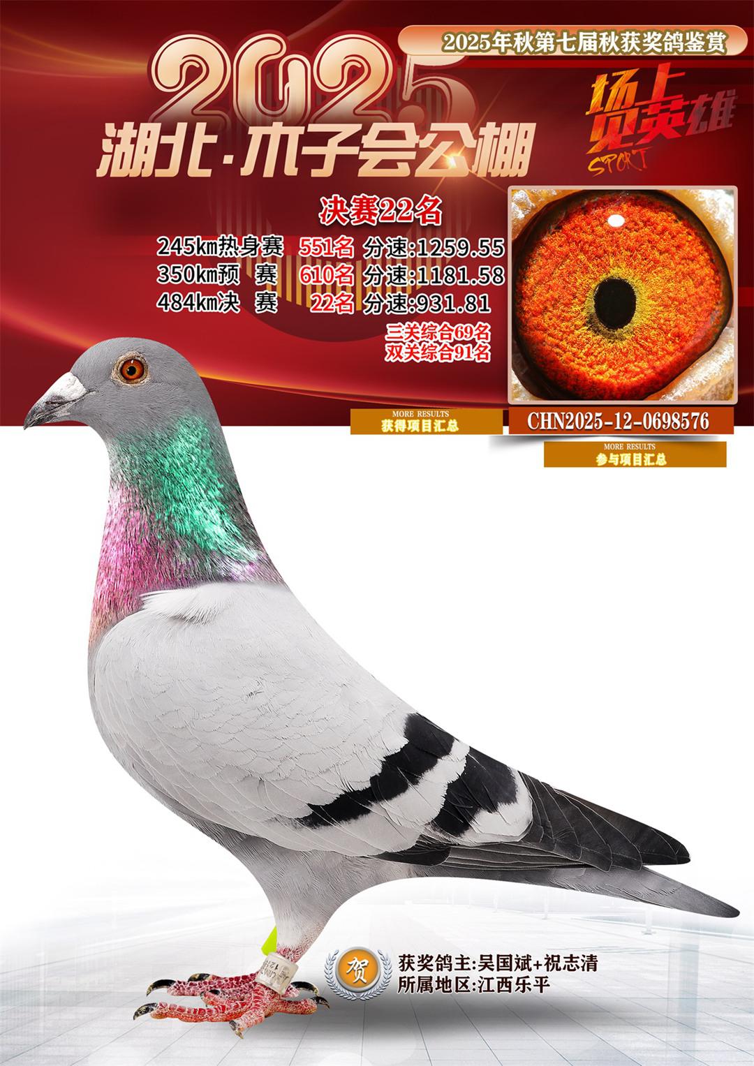湖北省木子会公棚2025决赛22名吴国斌+祝志清12-0698576江西乐平获奖鸽展示!