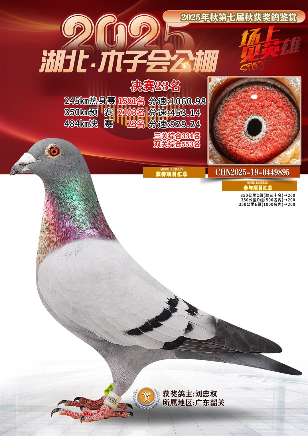湖北省木子会公棚2025决赛23名刘忠权19-0449895广东韶关获奖鸽展示!