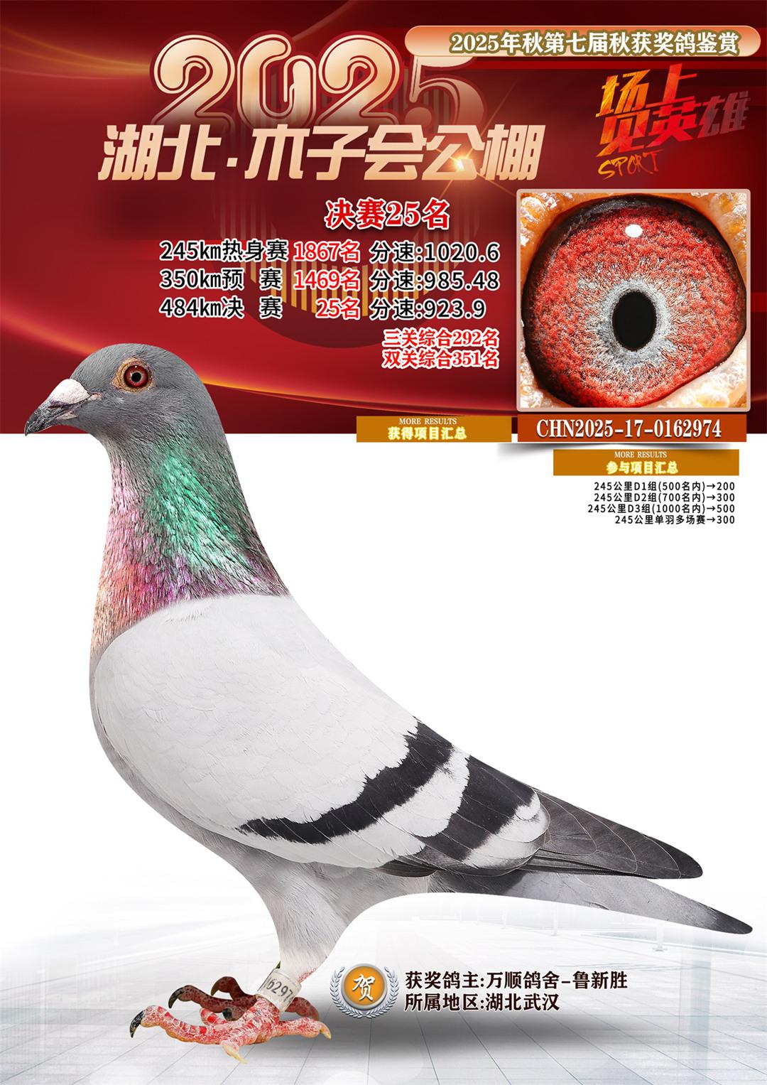 湖北省木子会公棚2025决赛25名万顺鸽舍-鲁新胜17-0162974湖北武汉获奖鸽展示!