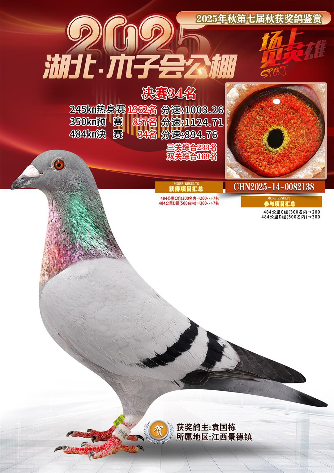湖北省木子会公棚2025决赛34名袁国栋14-0082138江西景德镇获奖鸽展示!