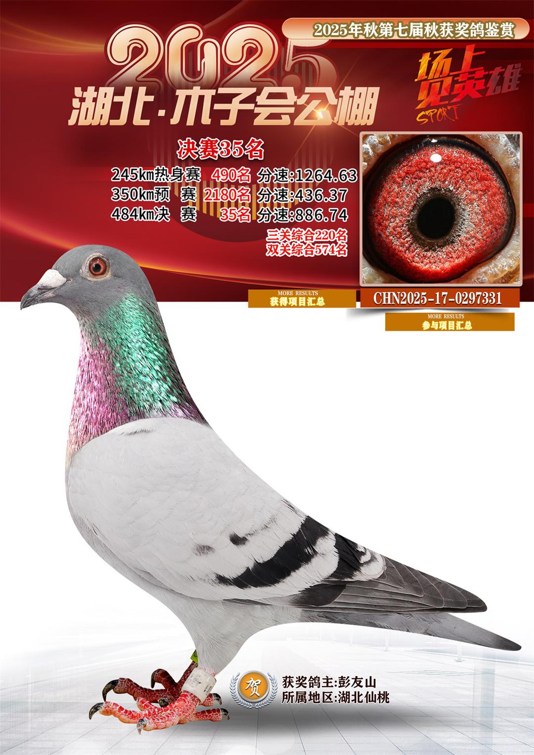 湖北省木子会公棚2025决赛35名彭友山17-0297331湖北仙桃获奖鸽展示!