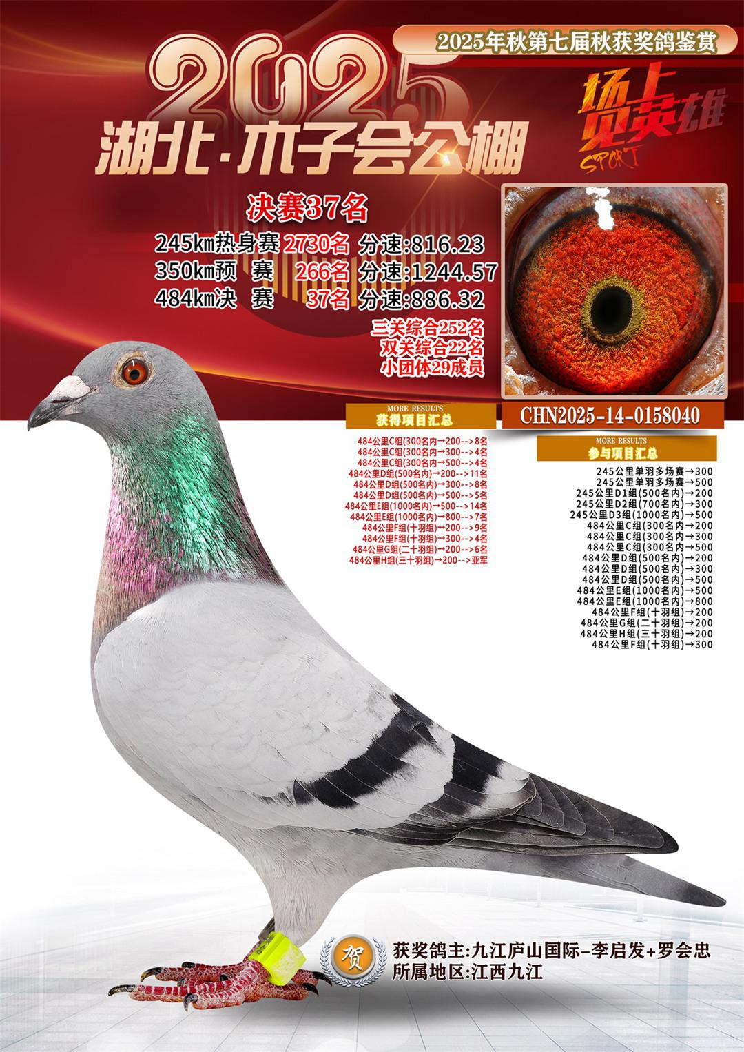 湖北省木子会公棚2025决赛37名九江庐山国际-李启发+罗会忠14-0158040江西九江获奖鸽展示!