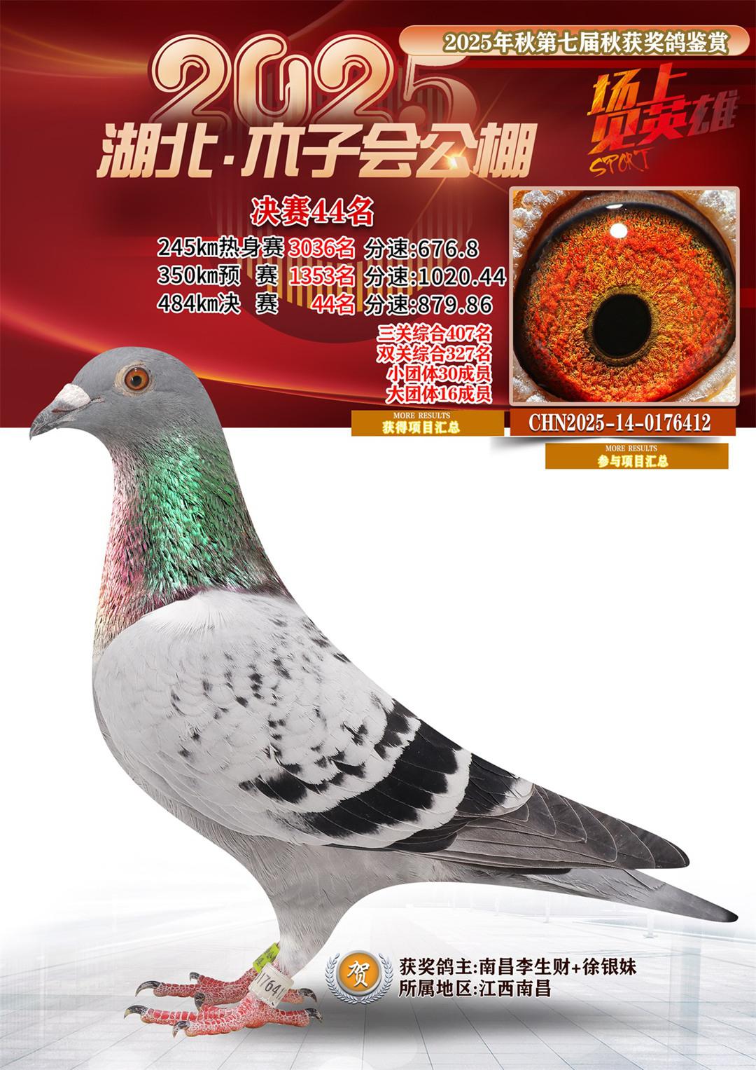湖北省木子会公棚2025决赛44名南昌李生财+徐银妹14-0176412江西南昌获奖鸽展示!