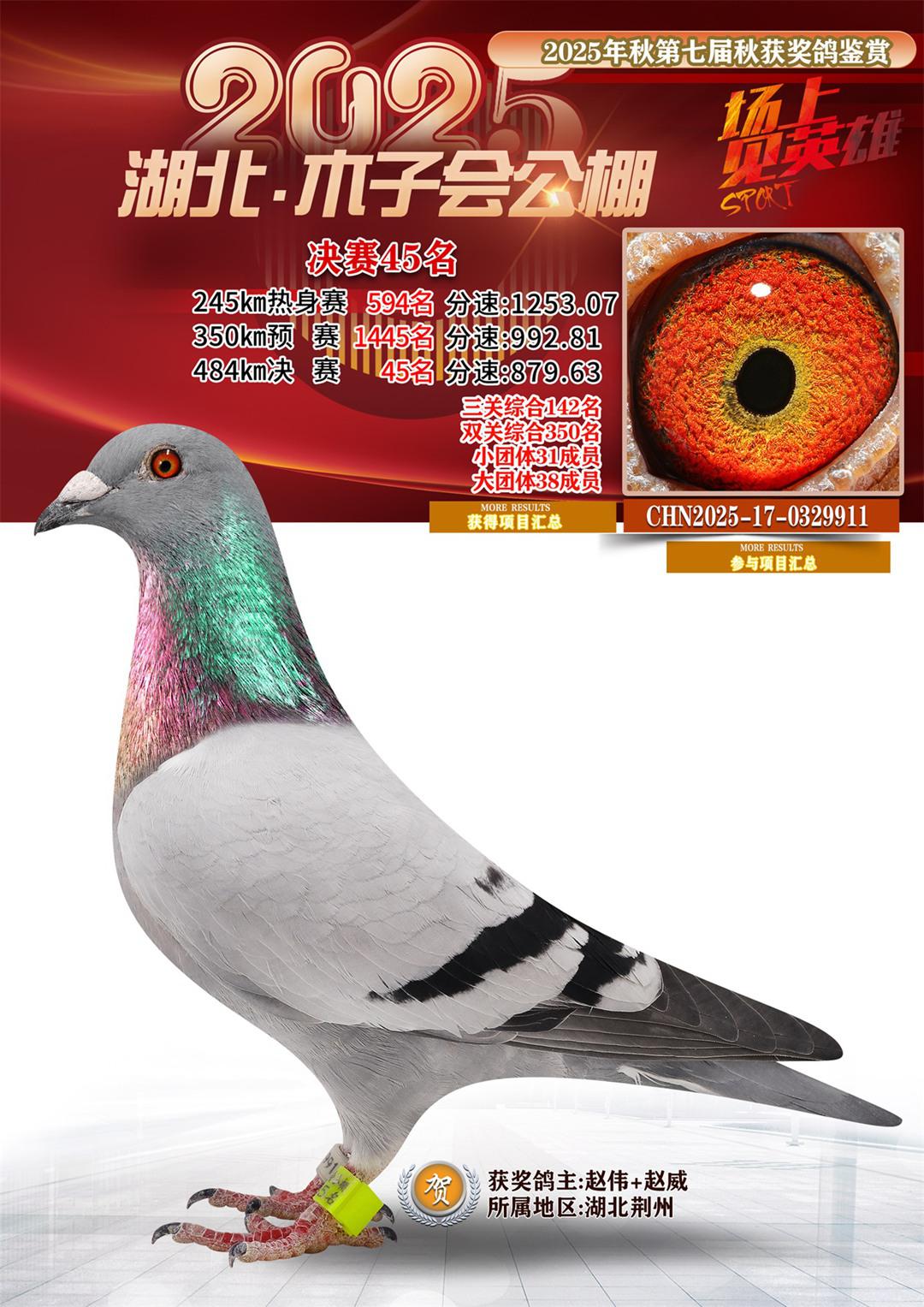 湖北省木子会公棚2025决赛45名赵伟+赵威17-0329911湖北荆州获奖鸽展示!