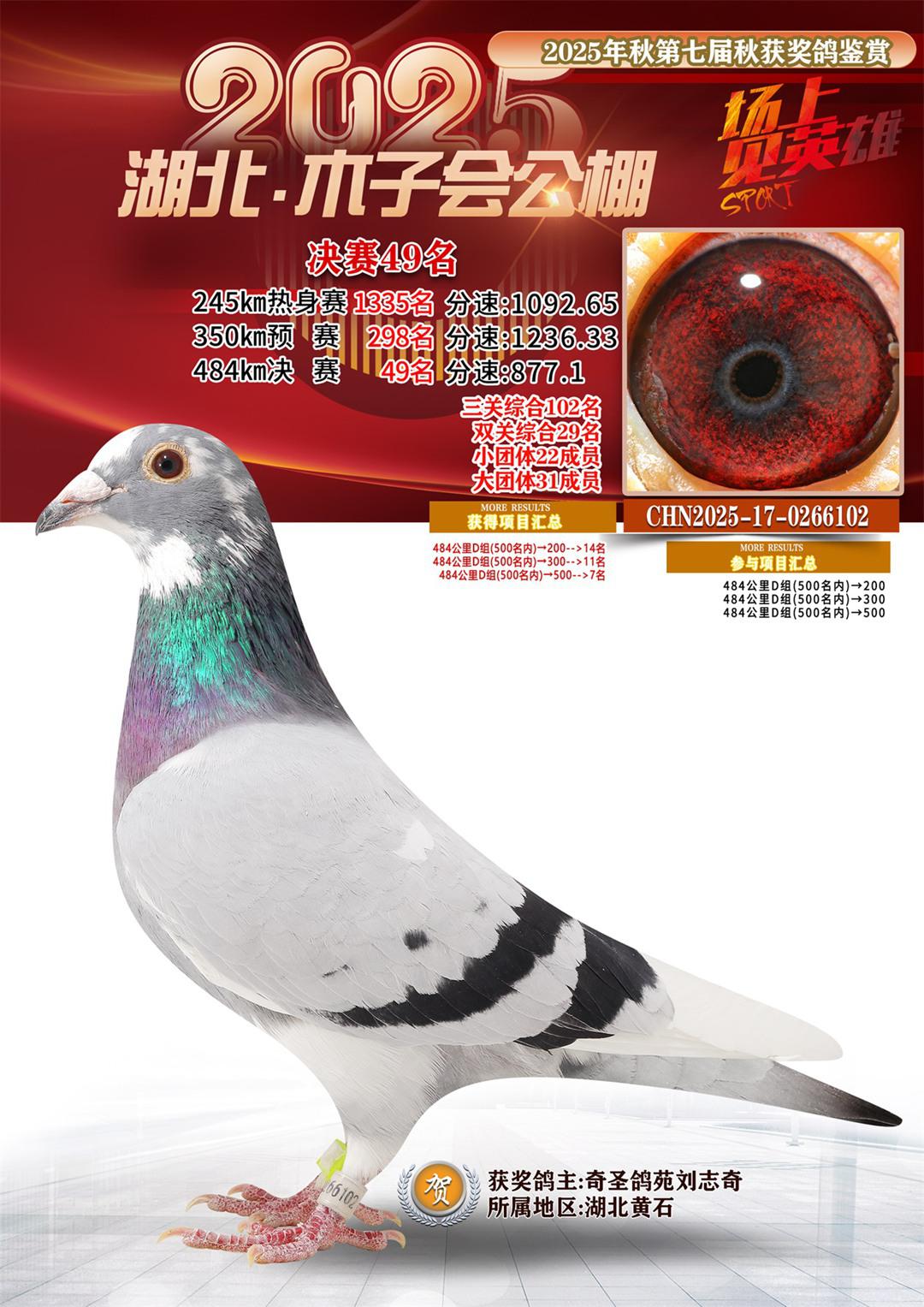 湖北省木子会公棚2025决赛49名奇圣鸽苑刘志奇17-0266102湖北黄石获奖鸽展示!