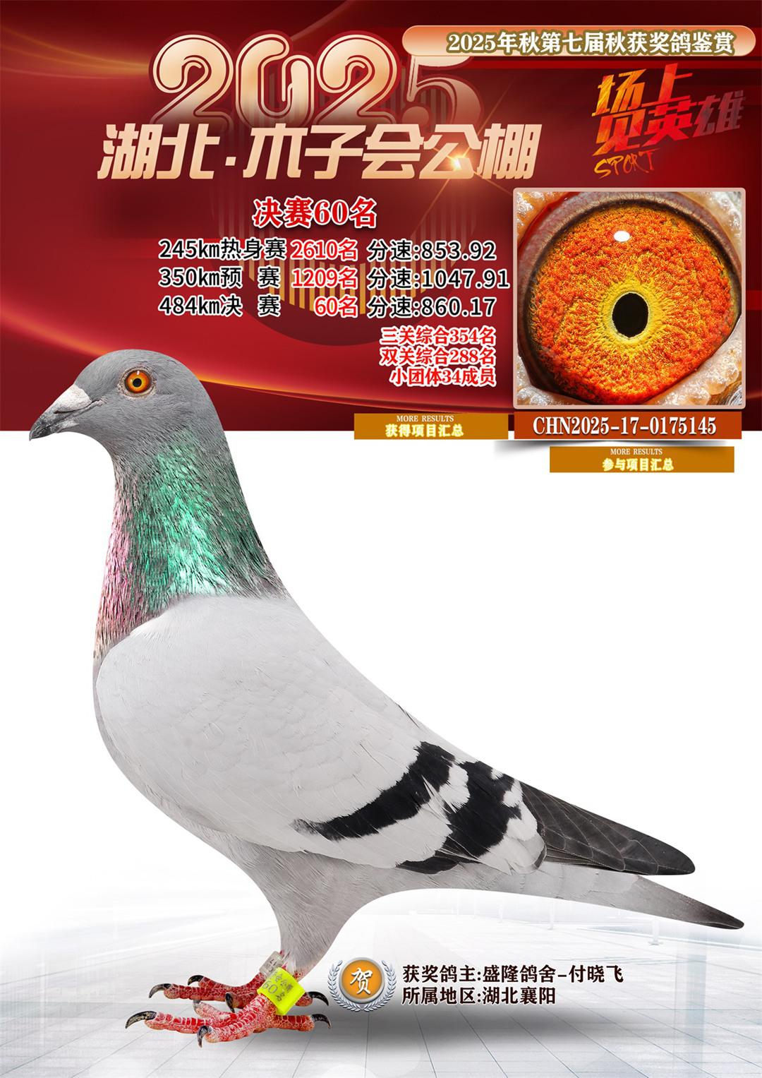 湖北省木子会公棚2025决赛60名盛隆鸽舍-付晓飞17-0175145湖北襄阳获奖鸽展示!