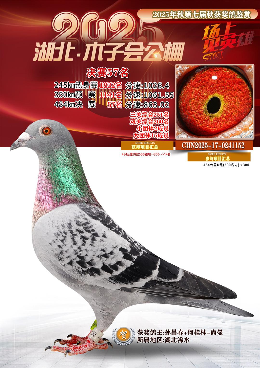 湖北省木子会公棚2025决赛57名孙昌春+何桂林-尚曼17-0241152湖北浠水获奖鸽展示!