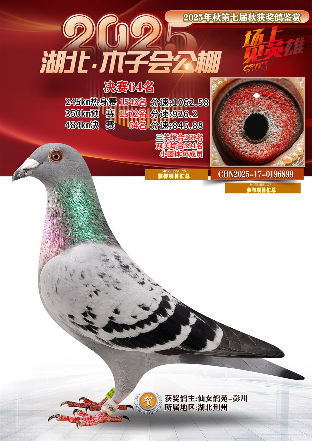 湖北省木子会公棚2025决赛64名仙女鸽苑-彭川17-0196899湖北荆州获奖鸽展示!